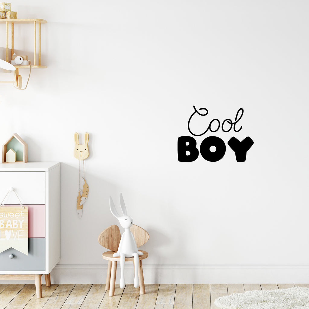This cute decal quote "Cool Boy" is the perfect touch for your home. Use it for your nursery; playroom; kids room or anywhere you want to bring some extra cute decoration. It's a vinyl sticker that is easy to put on any smooth and dry surface. Our modern designs don't just brighten up the room; but brighten up the day. Using top of the line vinyl across all of our production allows us to be the leaders in quality and design.