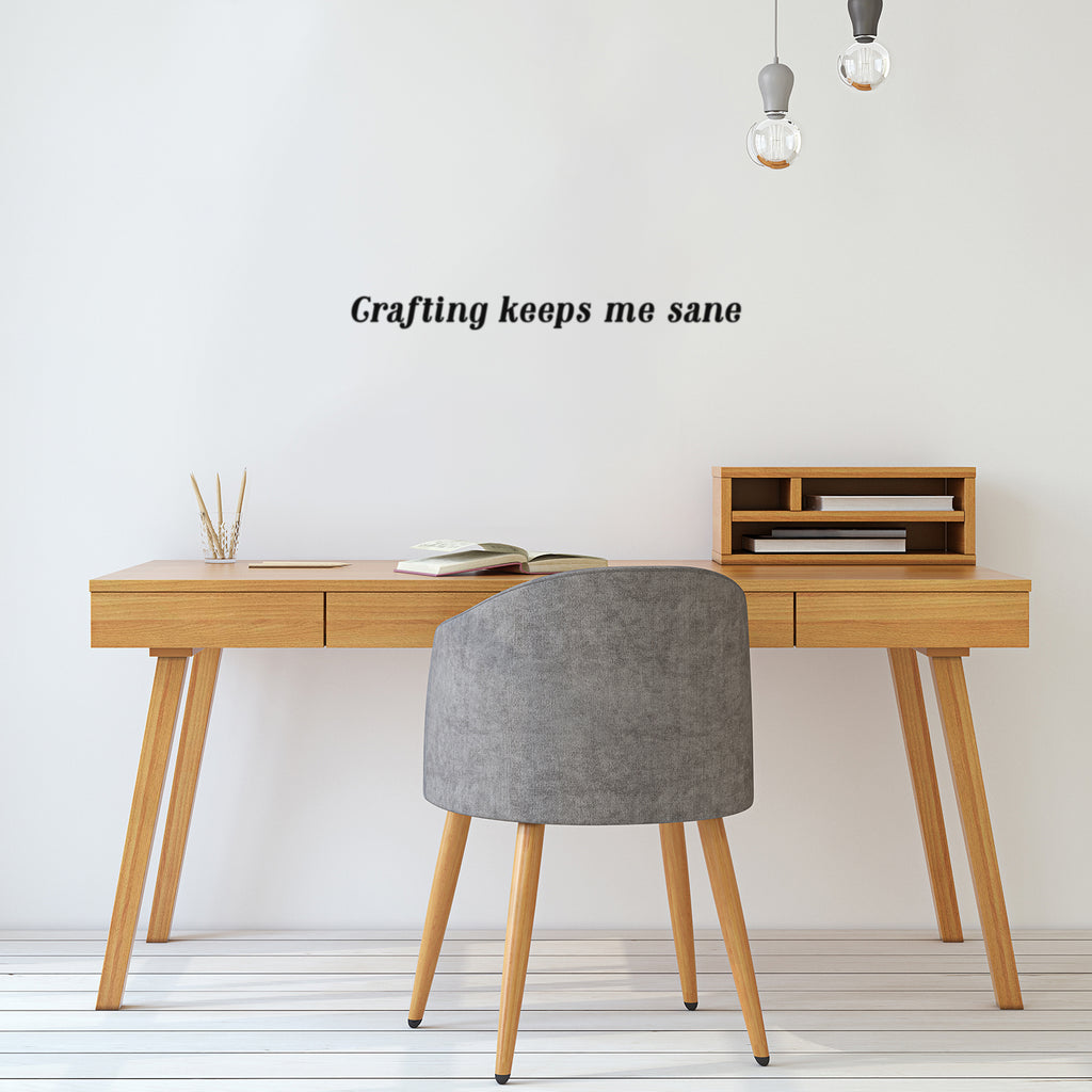 This awesome funny decal quote "Crafting Keeps Me Sane" is the perfect touch for your home or school. Use it for your bedroom; living room; office or anywhere you want to bring some extra cute decoration. It's a vinyl sticker that is easy to put on any smooth and dry surface. Our modern designs don't just brighten up the room; but brighten up the day. Using top of the line vinyl across all of our production allows us to be the leaders in quality and design.