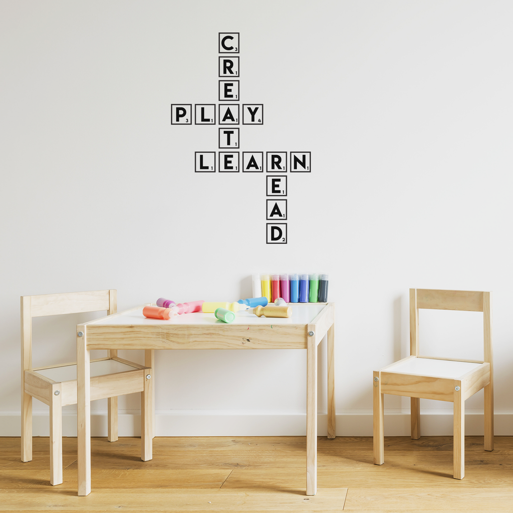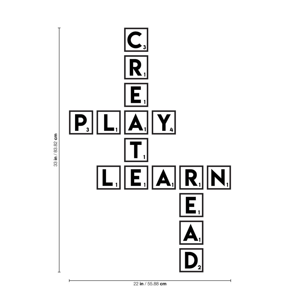 This awesome motivational decal quote "Create Play Learn Read"; is the perfect touch for your home or work. Use it for your dorm room; home office; living room or anywhere you want to bring some extra cute decoration. It's a vinyl sticker that is easy to put on any smooth and dry surface. Our modern designs don't just brighten up the room; but brighten up the day. Using top of the line vinyl across all of our production allows us to be the leaders in quality and design.