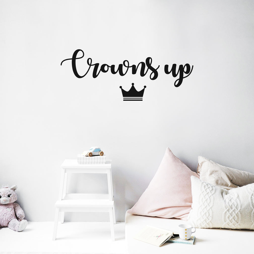 This awesome decal quote "Crowns Up"; is the perfect touch for your home. Use it for your dorm room; home office or anywhere you want to bring some extra decoration. It's a vinyl sticker that is easy to put on any smooth and dry surface. Our modern designs don't just brighten up the room; but brighten up the day. Using top of the line vinyl across all of our production allows us to be the leaders in quality and design.
