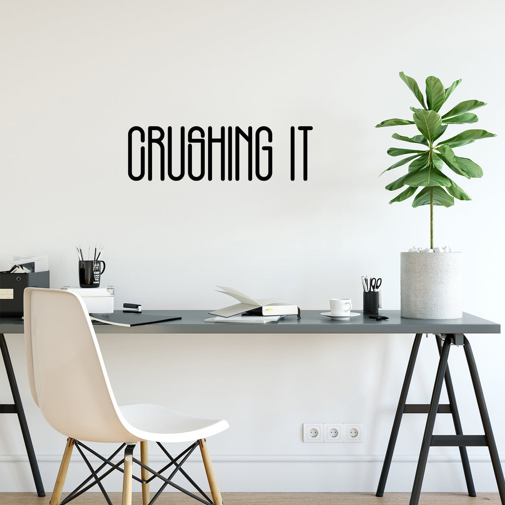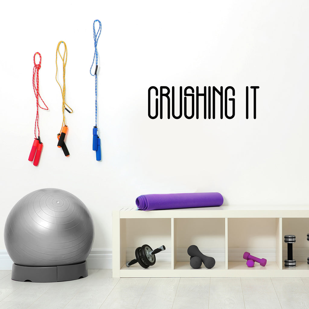 This modern positive & motivational decal quote "Crushing It"; is the perfect touch for your wellness center or home. Use it for your bedroom; fitness center; office or anywhere you want to bring some extra positive decoration. It's a vinyl sticker that is easy to put on any smooth and dry surface. Our modern designs don't just brighten up the room; but brighten up the day. Using top of the line vinyl across all of our production allows us to be the leaders in quality and design.