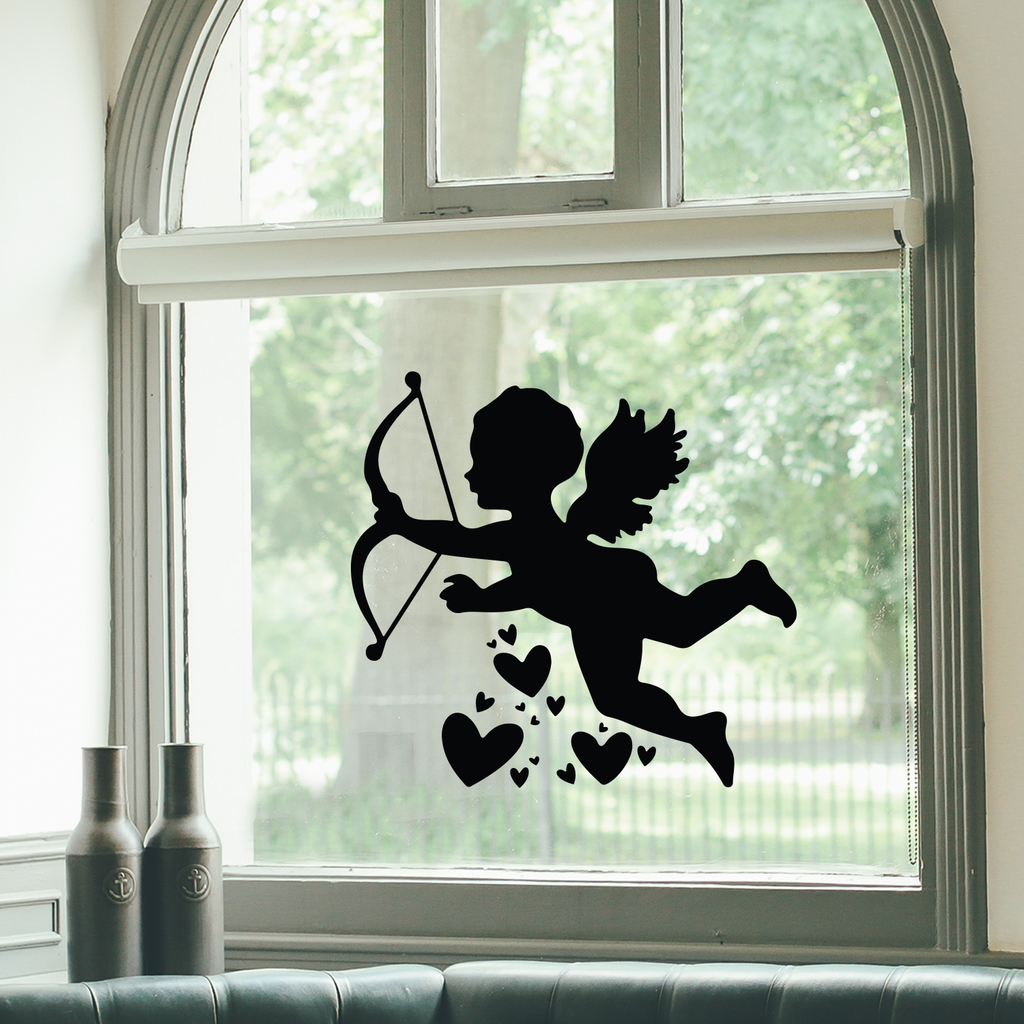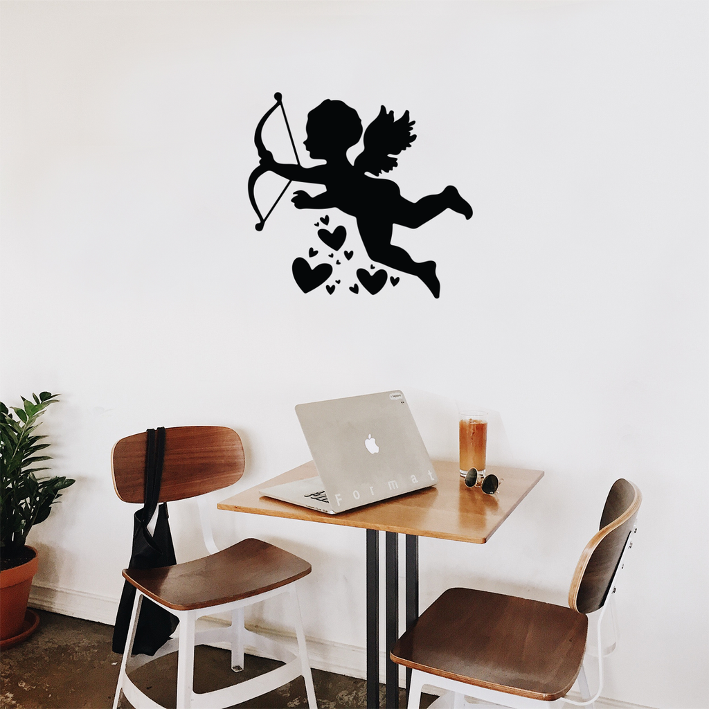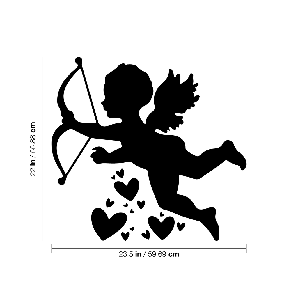 This inspirational decal design of Cupid With Hearts; is the perfect touch for your home or store. Use it for your storefront; entryway or as a Valentine's gift for someone special. It's a vinyl sticker that is easy to put on any smooth and dry surface. Our modern designs don't just brighten up the room; but brighten up the day. Using top of the line vinyl across all of our production allows us to be the leaders in quality and design.