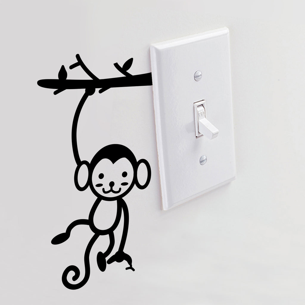 Vinyl Wall Art Decal - Cute Monkey On A Branch - Fun Decor For Light Switch Kids Boy Girl Bedroom Decor for Light Switch - Laptop Computer Peel And Stick Sticker Designs