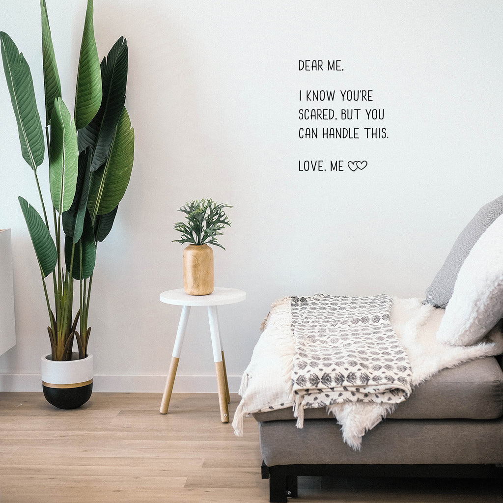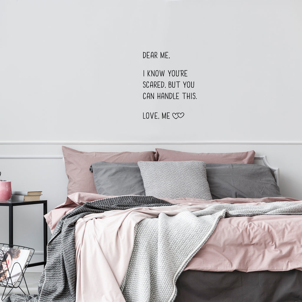 This awesome lovely decal quote "Dear Me I Know You're Scared But You Can"; is the perfect touch for your home or office. Use it for your bedroom; closet; living room or anywhere you want to bring some extra positive decoration. It's a vinyl sticker that is easy to put on any smooth and dry surface. Our modern designs don't just brighten up the room; but brighten up the day. Using top of the line vinyl across all of our production allows us to be the leaders in quality and design.