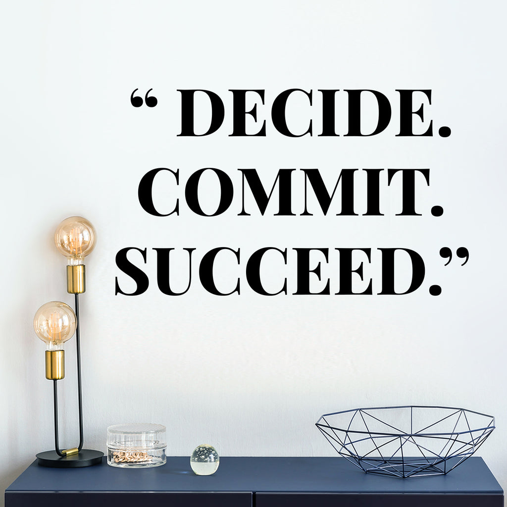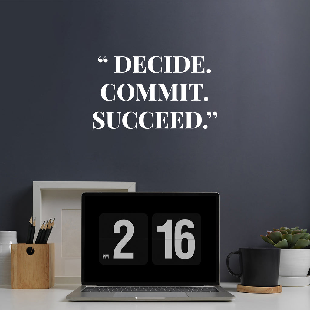 This awesome positive decal quote "Decide Commit Succeed"; is the perfect touch for your home or office. Use it for your store; coffee shop or anywhere you want to bring some extra inspiring decoration. It's a vinyl sticker that is easy to put on any smooth and dry surface. Our modern designs don't just brighten up the room; but brighten up the day. Using top of the line vinyl across all of our production allows us to be the leaders in quality and design.