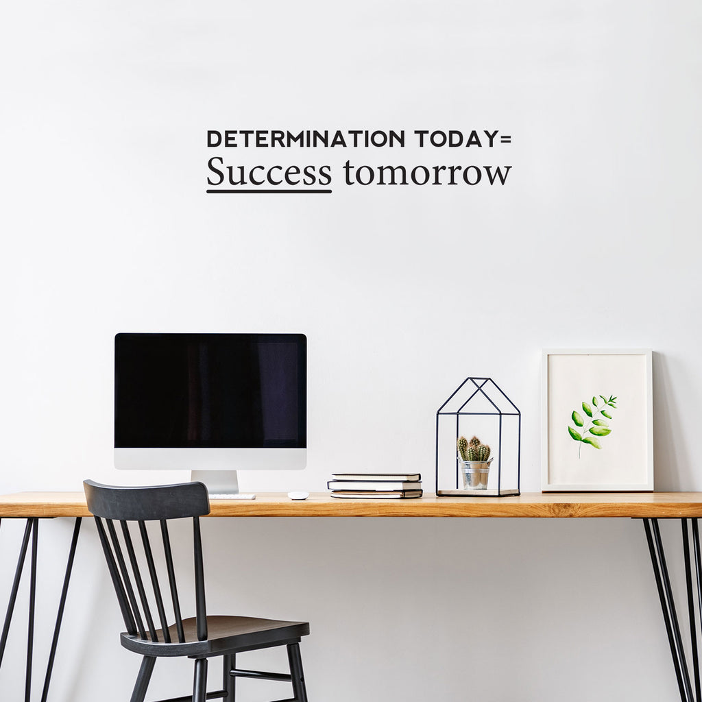 Vinyl Wall Art Decal - Determination Today Success Tomorrow - Positive Motivational Modern Home Bedroom Apartment Workplace Living Room Office Gym Fitness Decor Quote (9" x 45"; Black)
