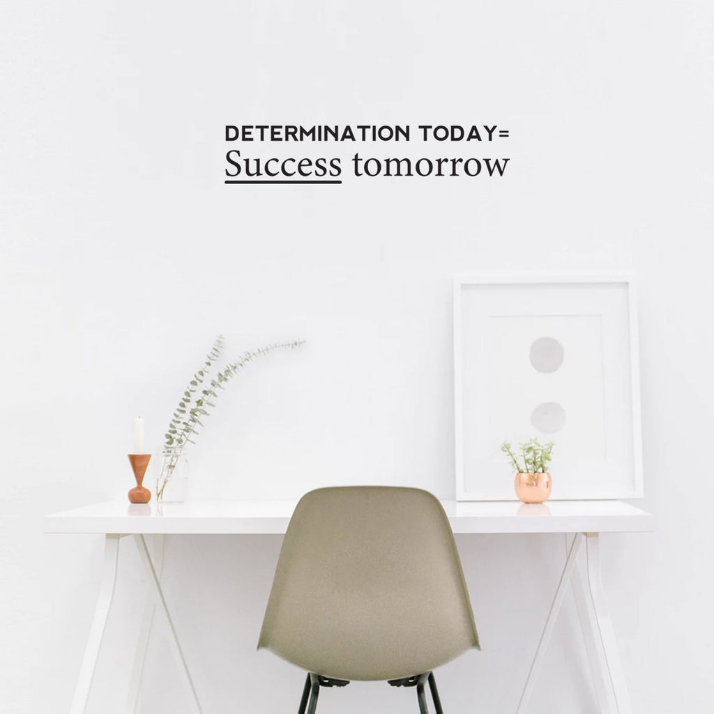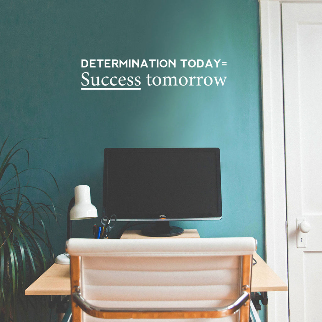 This motivational "Determination Today Success Tomorrow" life quotes wall art decal is modern and the perfect touch for both indoor and outdoor decoration. It’s a vinyl sticker that is easy to put on almost any smooth surface and really brings a room together adding the perfect touch of decoration. This vinyl decal quote is perfect to put wherever you want to bring inspiration and encouragement to remind yourself or anyone else to strive for success and to never give up. Our inspiring quotes don’t just brighten up the room; but brighten up the day. Using top of the line vinyl across all of our production allows us to be the leaders in quality and design.The easiest surfaces for Vinyl to stick on is Windows Walls Mirrors Dorm Rooms Cars Lockers Flat and Smooth Surfaces Tables and Glass CabinetsAll vinyl packages come with easy to follow instructions further explaining just how simple it is to apply vinyl on and off your surface of choice. Prior to applying the vinyl; be sure the surface is clean and oil free for best results. This vinyl is waterproof and is not permanent so it’s not only easy to use but easy to remove as well. In general; vinyl lettering is one of the latest and greatest trends in home decoration. Because our products are high quality; they give the illusion of painted wall art without the mess; cost; or time. What are you waiting for? Let’s get crafty!