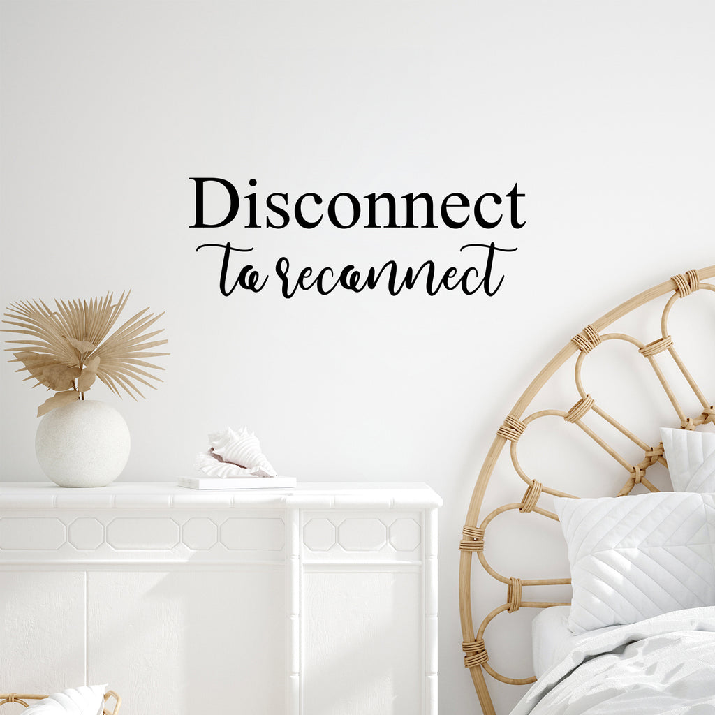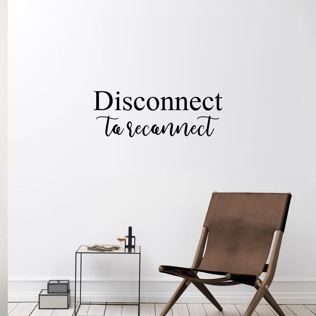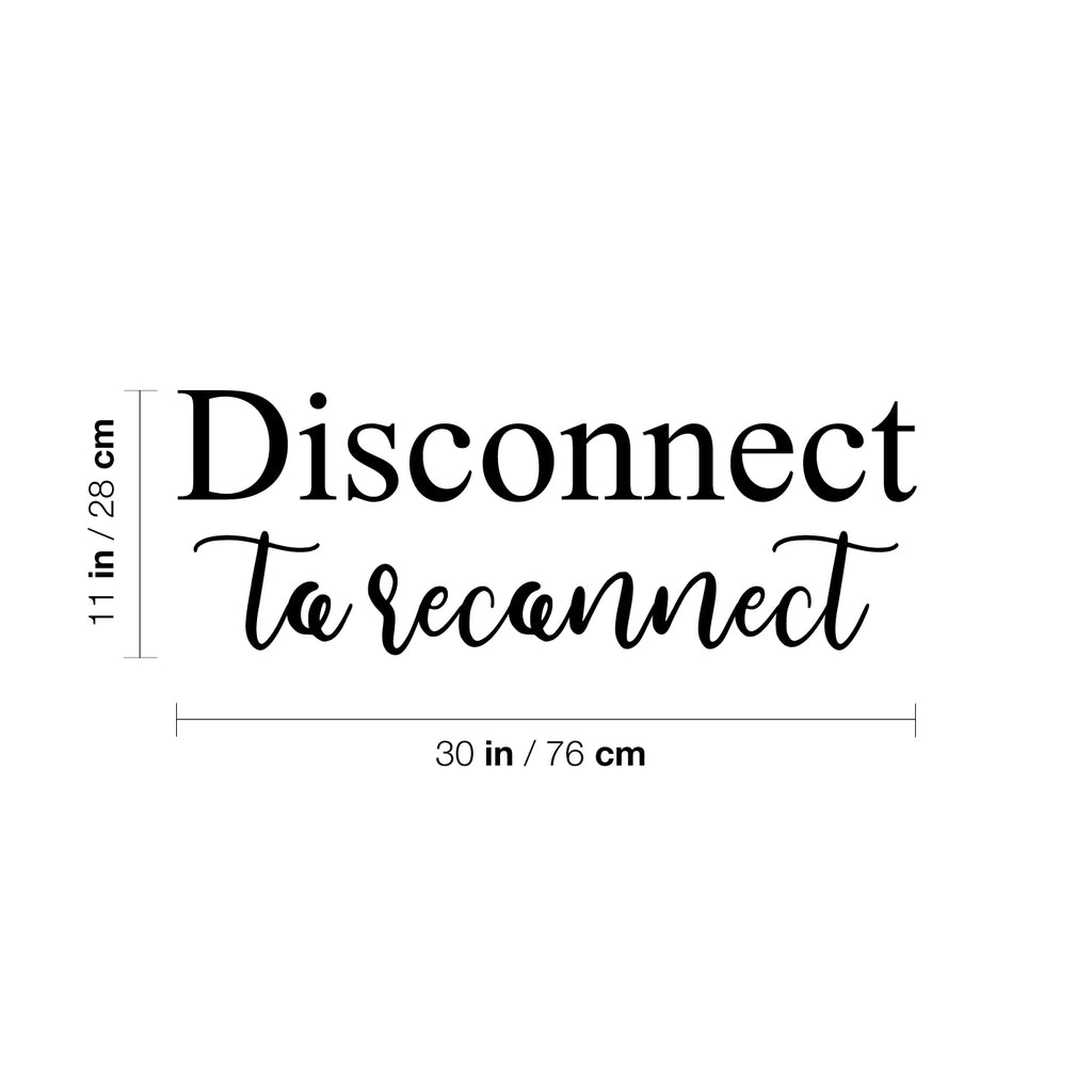 This awesome inspirational decal quote "Disconnect To Reconnect"; is the perfect touch for your home or apartment. Use it for your house; school patio; lunch area or anywhere you want to bring some extra decoration. It's a vinyl sticker that is easy to put on any smooth and dry surface. Our modern designs don't just brighten up the room; but brighten up the day. Using top of the line vinyl across all of our production allows us to be the leaders in quality and design.