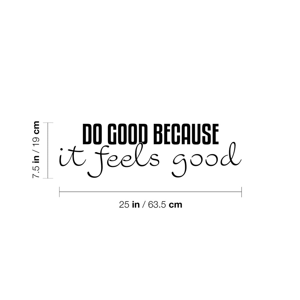 This awesome inspirational decal quote "Do Good Because It Feels Good"; is the perfect touch for your home or school. Use it for your bedroom; living room; storefront or anywhere you want to bring some extra cute decoration. It's a vinyl sticker that is easy to put on any smooth and dry surface. Our modern designs don't just brighten up the room; but brighten up the day. Using top of the line vinyl across all of our production allows us to be the leaders in quality and design.