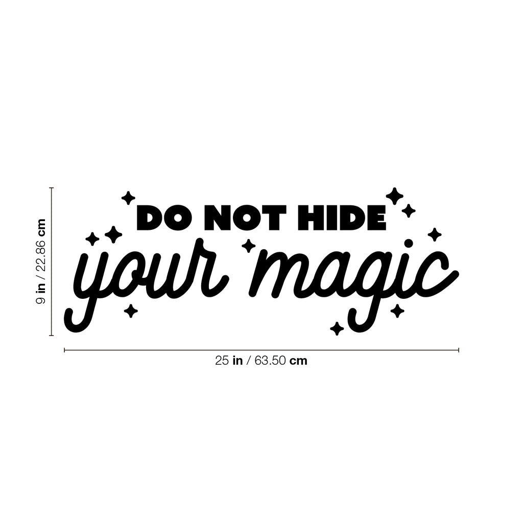This great decal quote "Do Not Hide Your Magic"; is the perfect touch for your home. Use it for your makeup area; dorm room or anywhere you want to bring some extra decoration. It's a vinyl sticker that is easy to put on any smooth and dry surface. Our modern designs don't just brighten up the room; but brighten up the day. Using top of the line vinyl across all of our production allows us to be the leaders in quality and design.