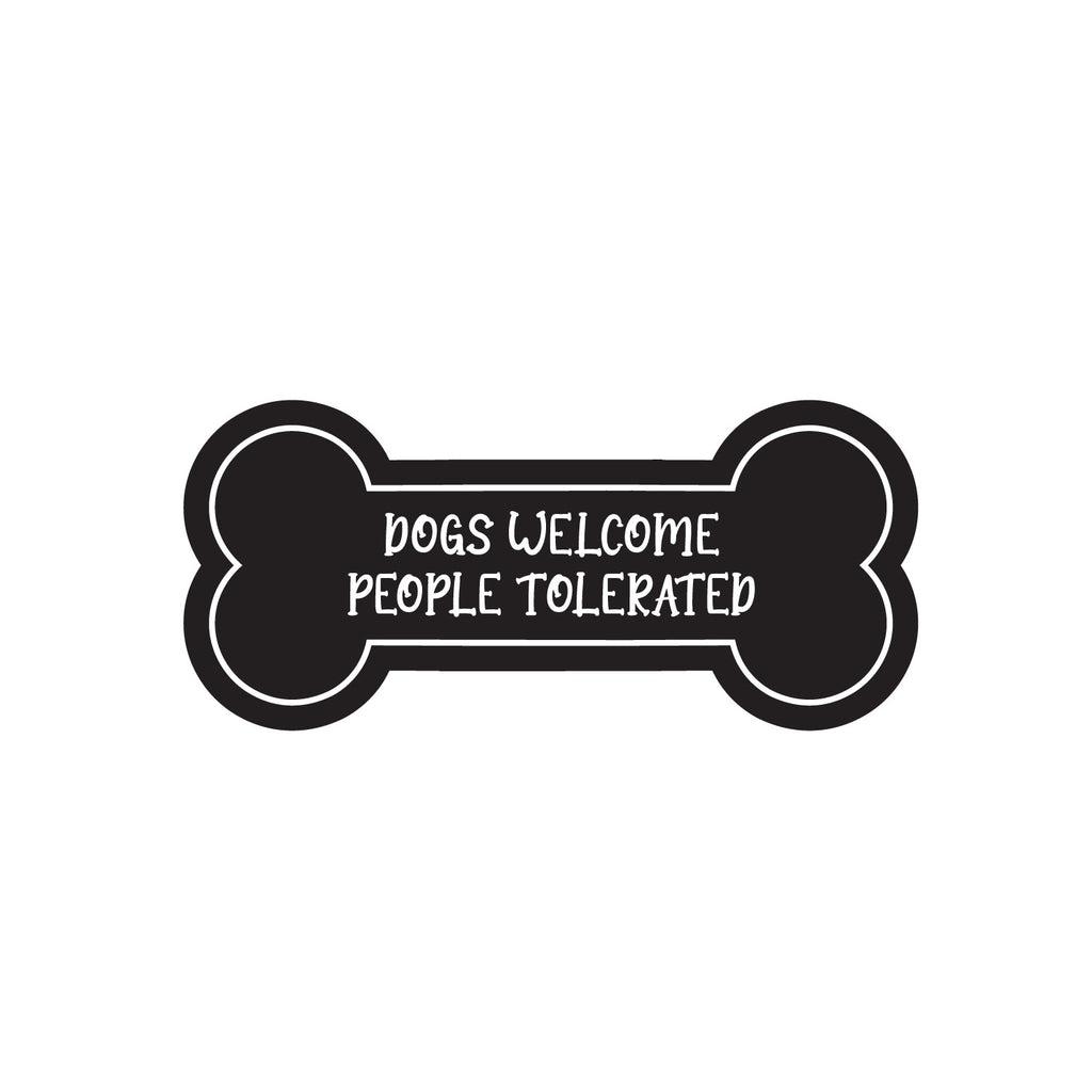 This cute decal quote "Dogs Welcome Humans Tolerated"; is the perfect touch for your home or office. Use it for your laptop; notebook; car or anywhere you want to bring some extra cute decoration. It's a vinyl sticker that is easy to put on any smooth and dry surface. Our modern designs don't just brighten up the room; but brighten up the day. Using top of the line vinyl across all of our production allows us to be the leaders in quality and design.