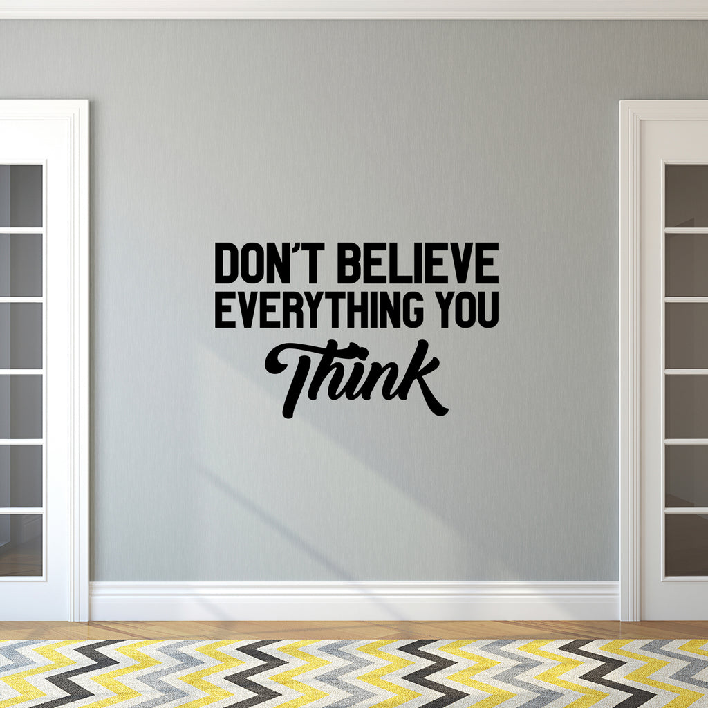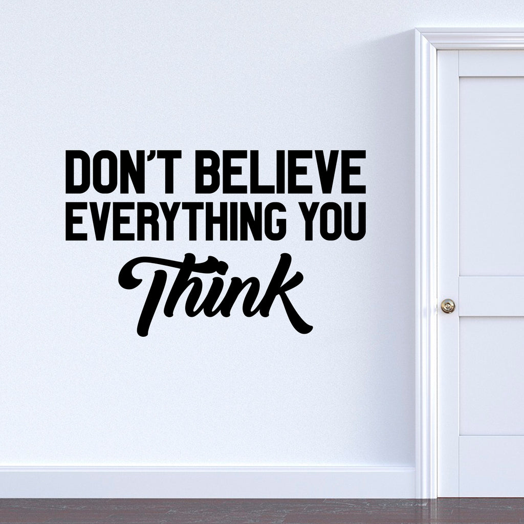 Vinyl Wall Art Decal - Don't Believe Everything You Think - Inspirational Workplace Bedroom Apartment Decor Decals - Positive Indoor Outdoor Home Living Room Office Quotes