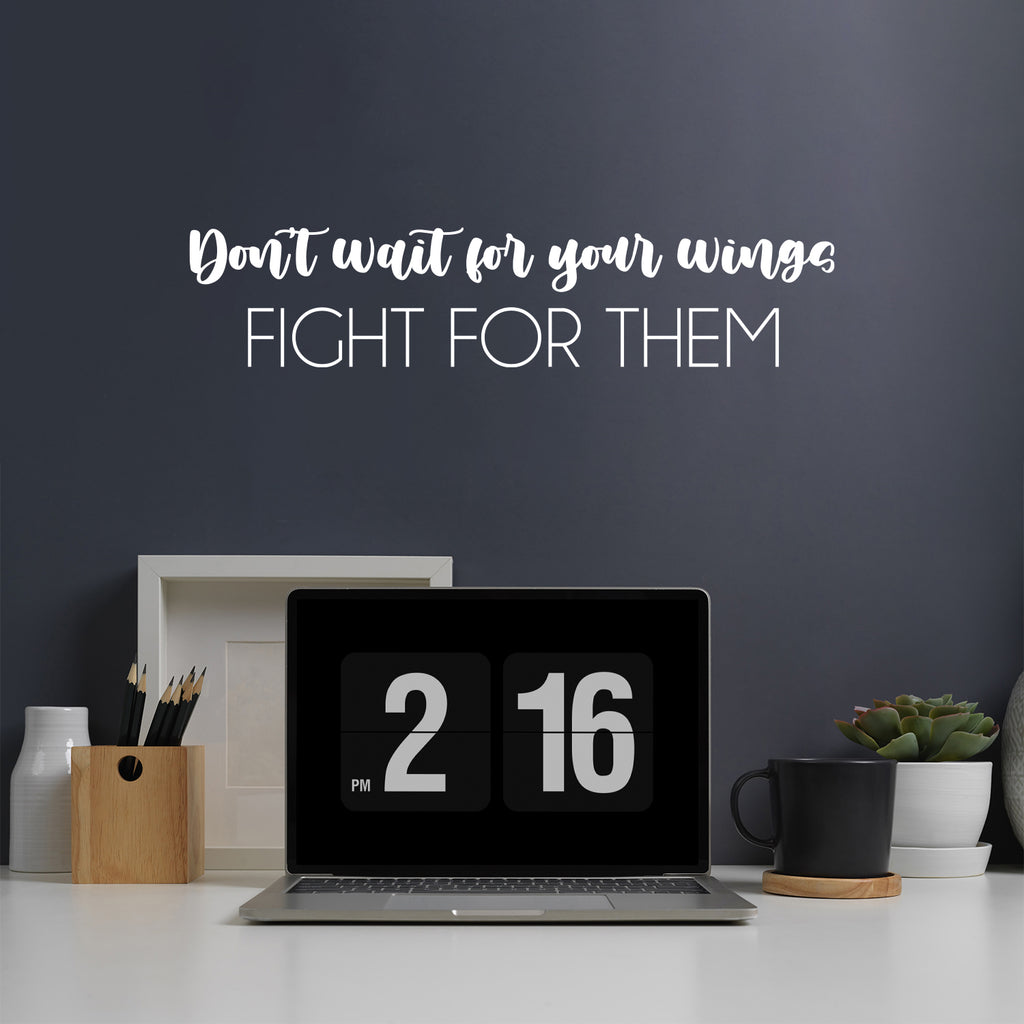 Vinyl Wall Art Decal - Don't Wait For Your Wings Fight For Them - 5. Trendy Positive Motivational Quote Sticker For Bedroom Closet Living Room School Office Decor