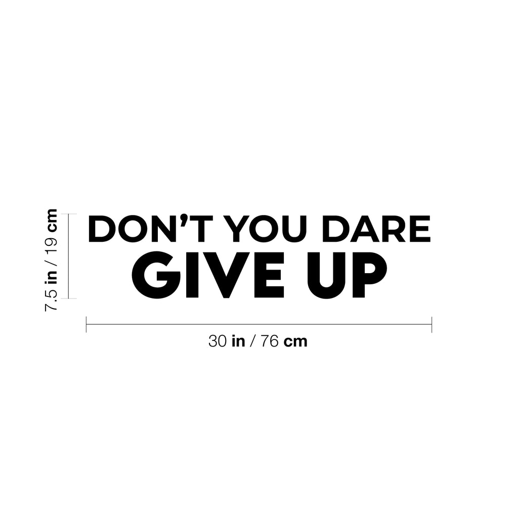 This modern positive & motivational decal quote "Don't You Dare Give Up"; is the perfect touch for your wellness center or home. Use it for your bedroom; fitness center; office or anywhere you want to bring some extra positive decoration. It's a vinyl sticker that is easy to put on any smooth and dry surface. Our modern designs don't just brighten up the room; but brighten up the day. Using top of the line vinyl across all of our production allows us to be the leaders in quality and design.
