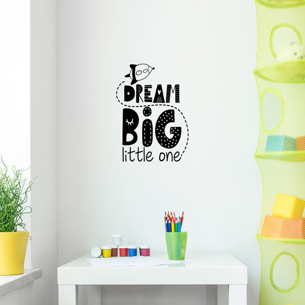 This cute decal quote "Dream Big Little One" is the perfect touch for your home. Use it for your nursery; playroom; kids room or anywhere you want to bring some extra cute decoration. It's a vinyl sticker that is easy to put on any smooth and dry surface. Our modern designs don't just brighten up the room; but brighten up the day. Using top of the line vinyl across all of our production allows us to be the leaders in quality and design.