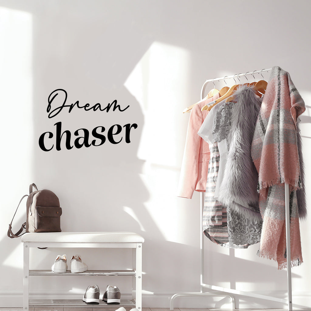 This awesome inspirational decal quote "Dream Chaser"; is the perfect touch for your home or school. Use it for your bedroom; living room; storefront or anywhere you want to bring some extra cute decoration. It's a vinyl sticker that is easy to put on any smooth and dry surface. Our modern designs don't just brighten up the room; but brighten up the day. Using top of the line vinyl across all of our production allows us to be the leaders in quality and design.
