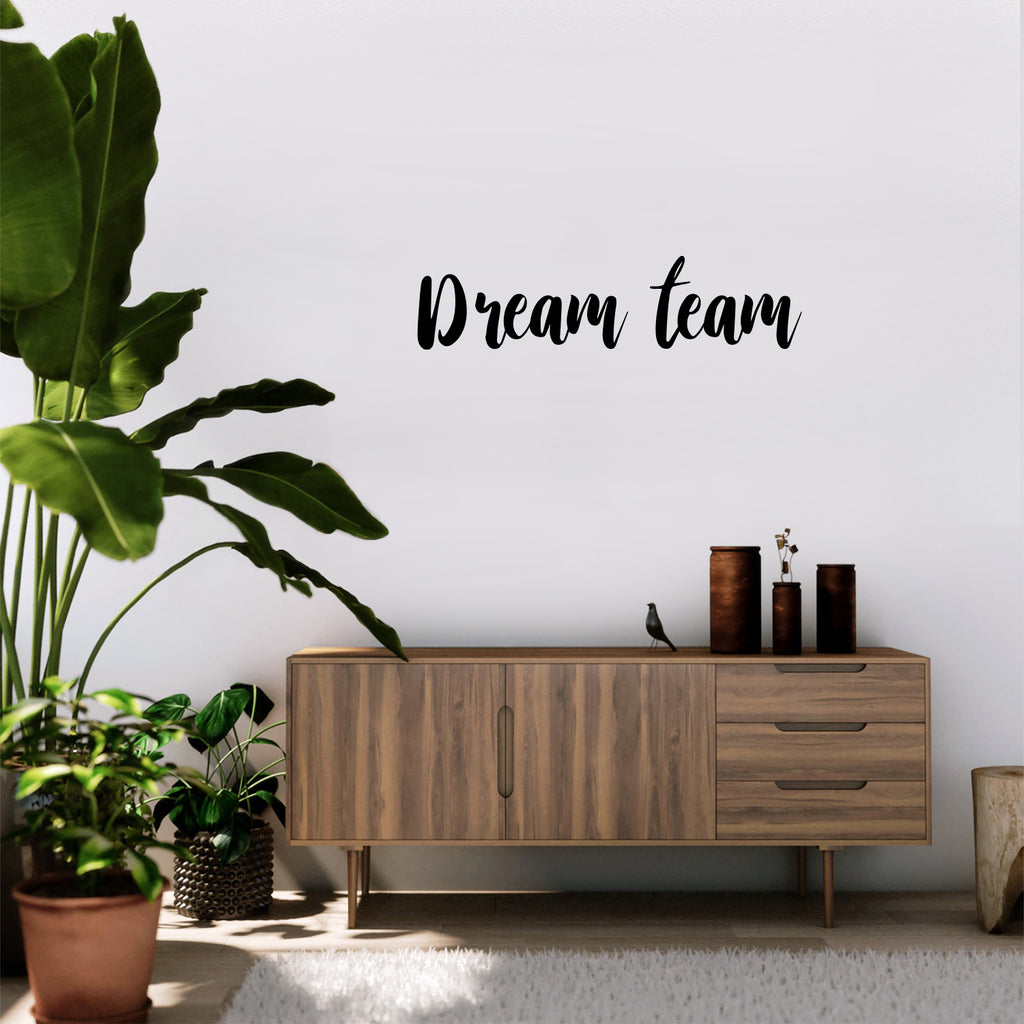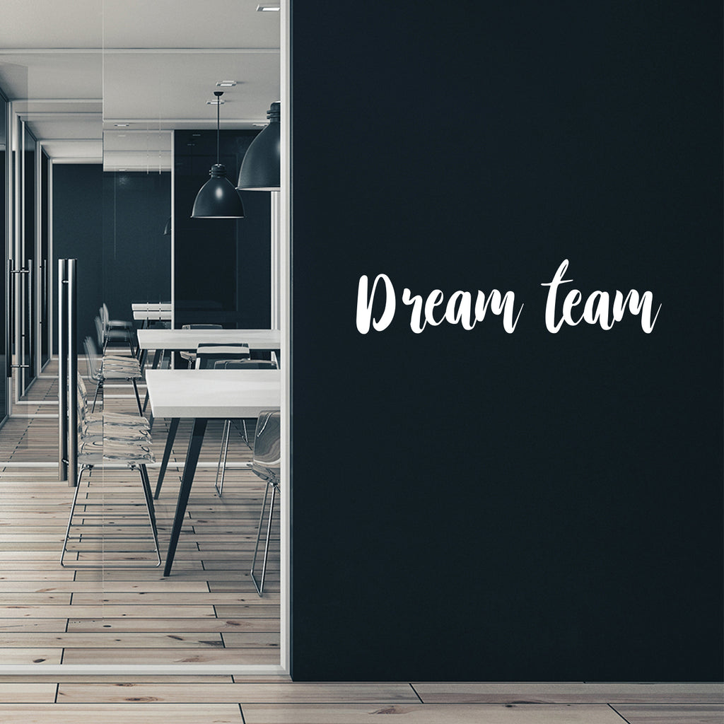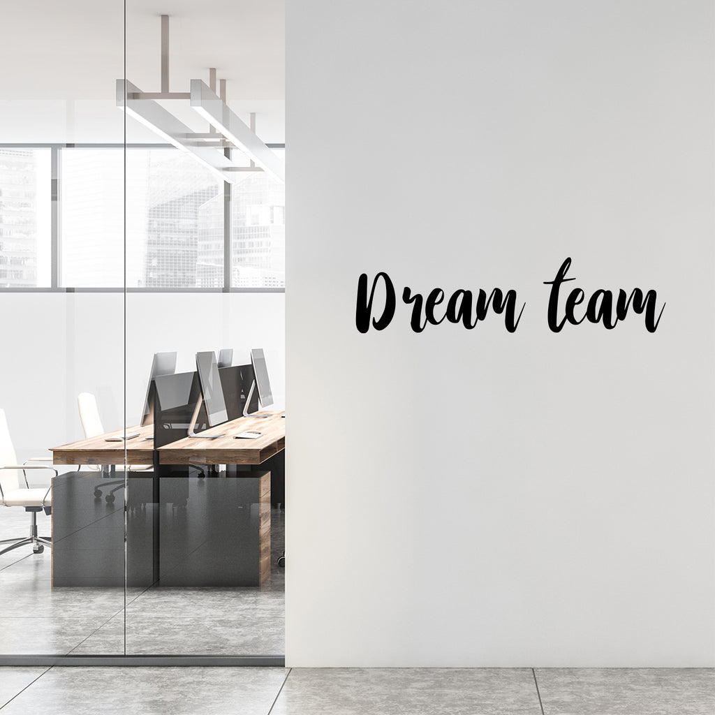 This awesome optimistic & motivational decal quote "Dream Team"; is the perfect touch for your gym or office. Use it for your living room; school; workout space or anywhere you want to bring some extra positive decoration. It's a vinyl sticker that is easy to put on any smooth and dry surface. Our modern designs don't just brighten up the room; but brighten up the day. Using top of the line vinyl across all of our production allows us to be the leaders in quality and design.