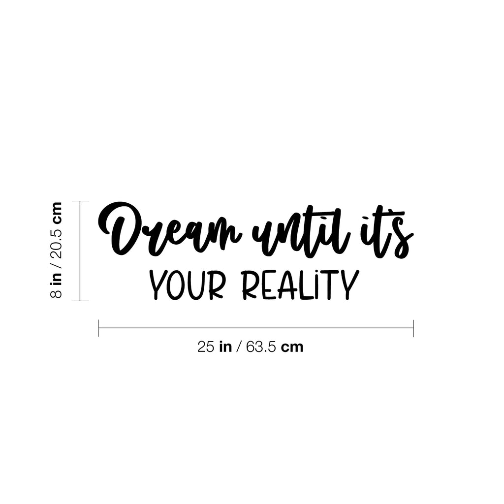 This awesome inspirational decal quote "Dream Until It's Your Reality"; is the perfect touch for your home or classroom. Use it for your home school; living room; office or anywhere you want to bring some extra decoration. It's a vinyl sticker that is easy to put on any smooth and dry surface. Our modern designs don't just brighten up the room; but brighten up the day. Using top of the line vinyl across all of our production allows us to be the leaders in quality and design.