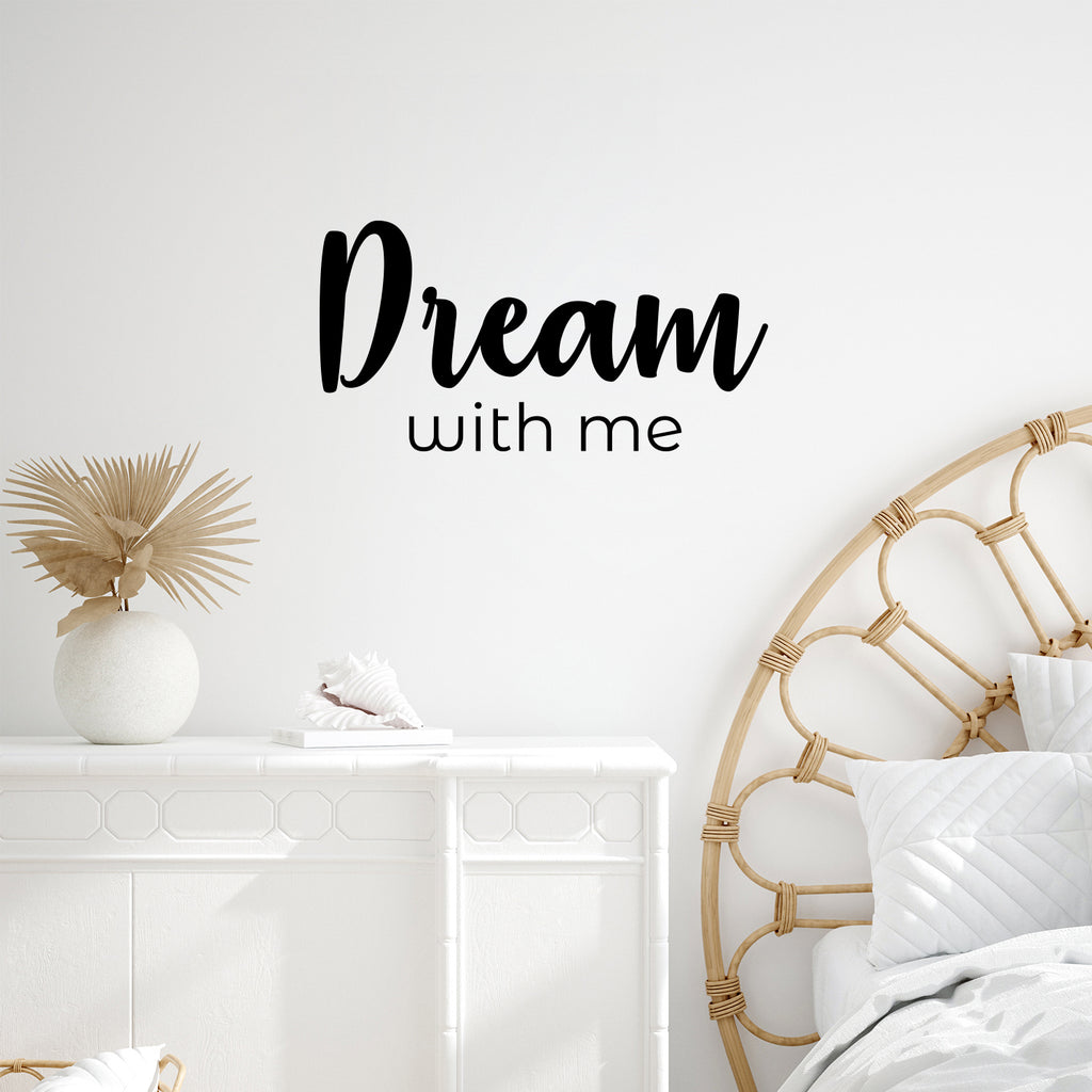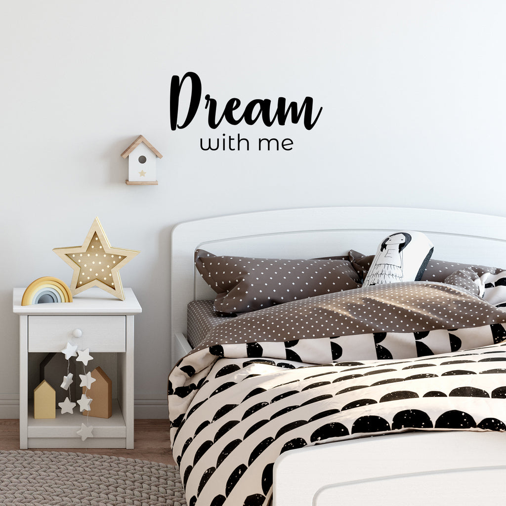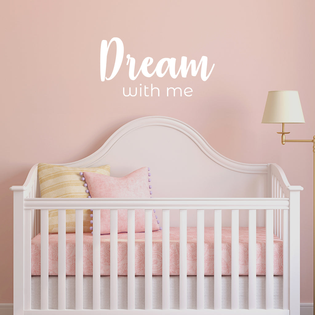 This awesome lovely decal quote "Dream With Me" is the perfect touch for your home. Use it for your nursery; playroom; kids room or anywhere you want to bring some extra cute decoration. It's a vinyl sticker that is easy to put on any smooth and dry surface. Our modern designs don't just brighten up the room; but brighten up the day. Using top of the line vinyl across all of our production allows us to be the leaders in quality and design.