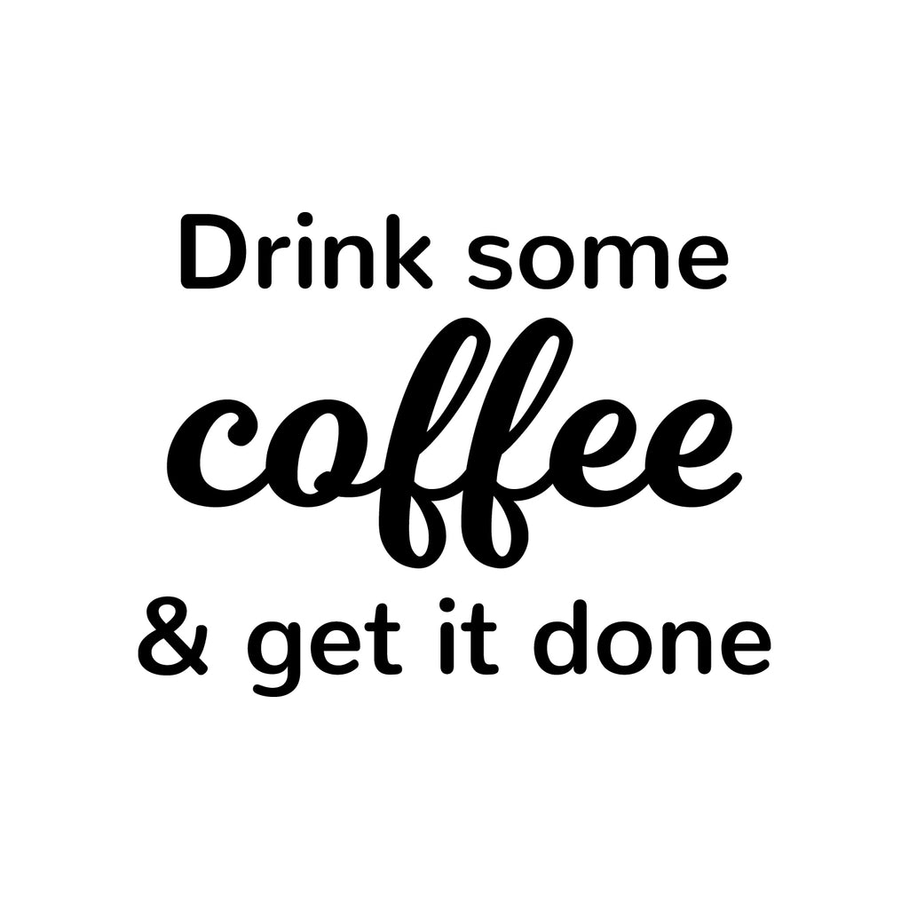 This awesome fun decal quote "Drink Some Coffee & Get It Done"; is the perfect touch for your office or coffee shop. Use it for your dining room; restaurant; kitchen or anywhere you want to bring some extra fun decoration. It's a vinyl sticker that is easy to put on any smooth and dry surface. Our modern designs don't just brighten up the room; but brighten up the day. Using top of the line vinyl across all of our production allows us to be the leaders in quality and design.