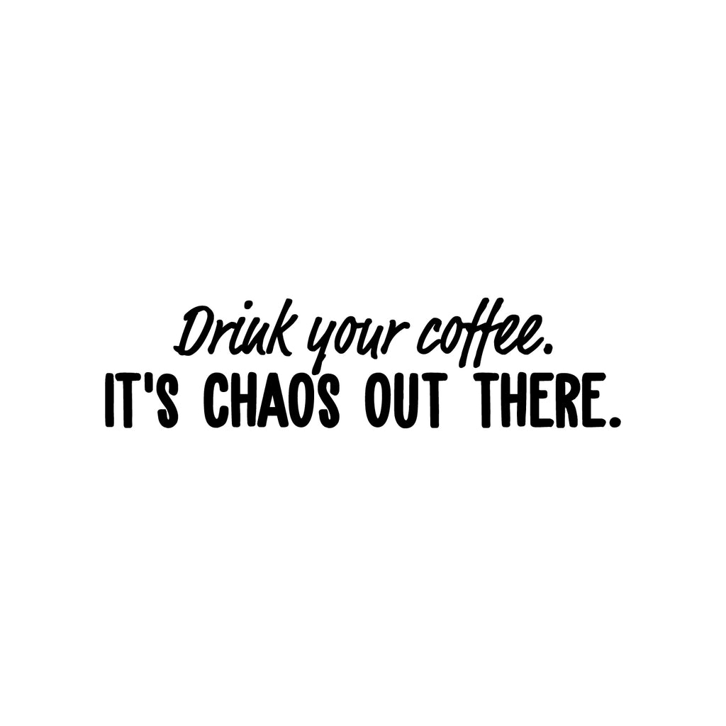 This awesome inspiring & fun quote "Drink Your Coffee It's Chaos Out There"; is the perfect touch for your office or coffee shop. Use it for your dining room; restaurant; kitchen or anywhere you want to bring some extra fun decoration. It's a vinyl sticker that is easy to put on any smooth and dry surface. Our modern designs don't just brighten up the room; but brighten up the day. Using top of the line vinyl across all of our production allows us to be the leaders in quality and design.