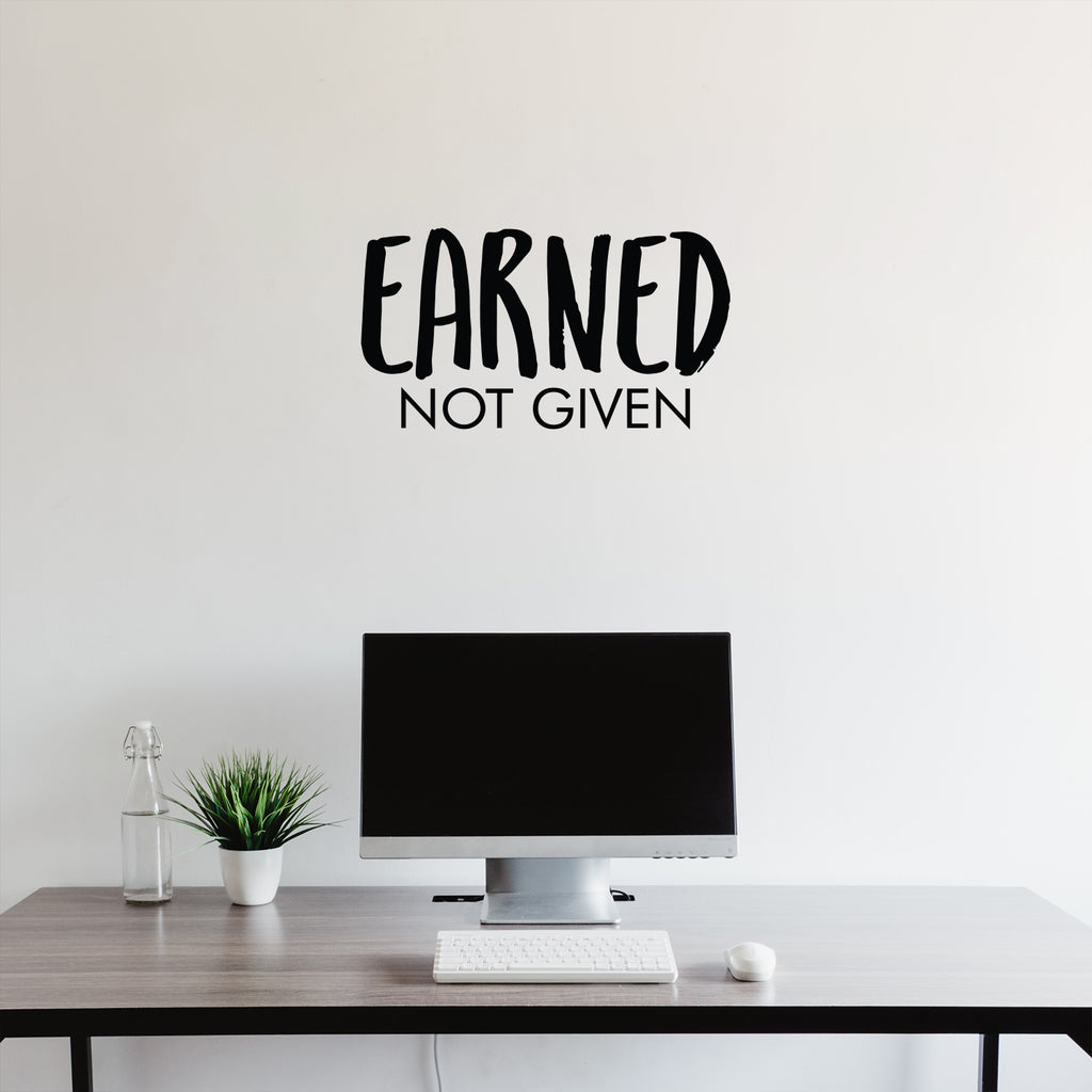 Vinyl Wall Art Decal - Earned Not Given - Trendy Inspirational Positive Good Vibes Quote Sticker For Office Business Store Gym Fitness School Playroom Decor