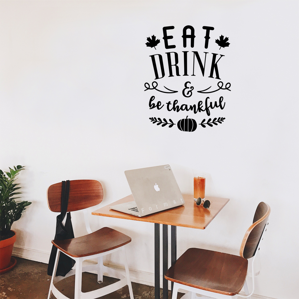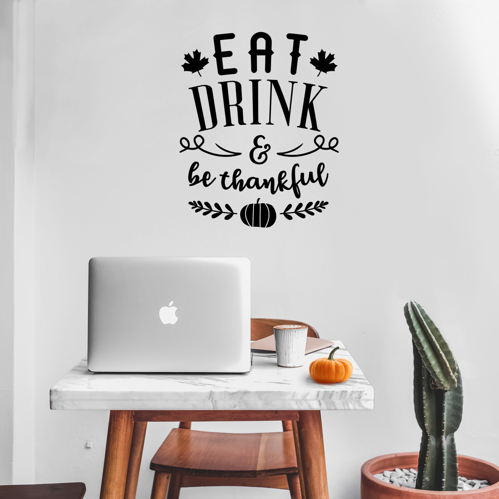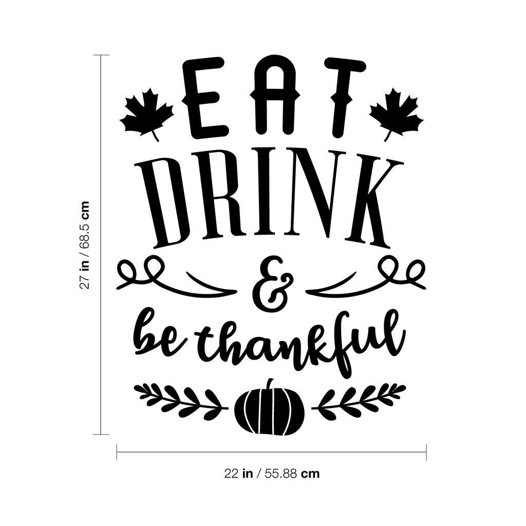 This awesome thanksgiving decal quote "Eat Drink And Be Thankful" is the perfect touch for your home or store. Use it for your living room; kitchen; dining room or anywhere you want to bring some extra decoration. It's a vinyl sticker that is easy to put on any smooth and dry surface. Our modern designs don't just brighten up the room; but brighten up the day. Using top of the line vinyl across all of our production allows us to be the leaders in quality and design.