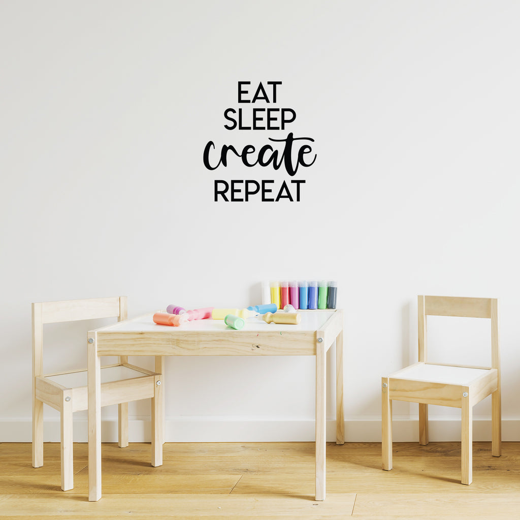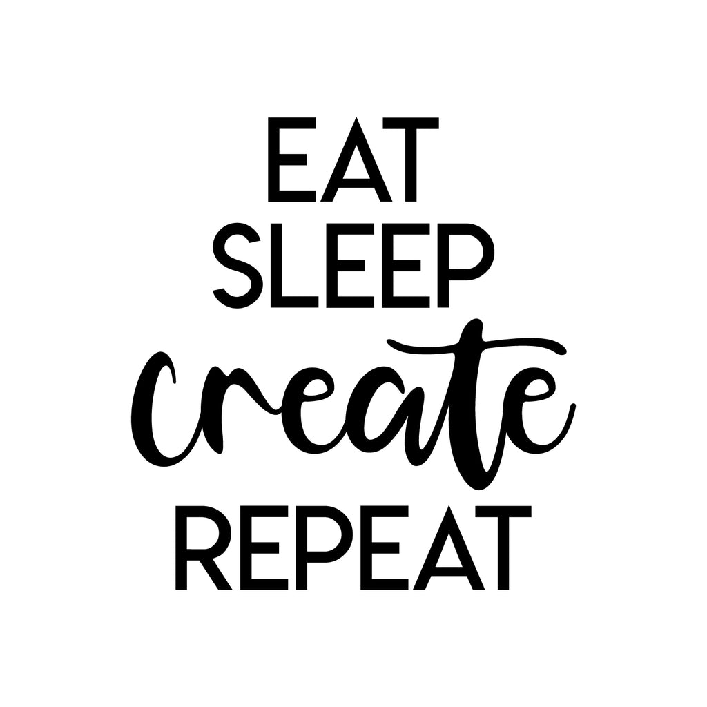 This awesome decal quote "Eat Sleep Create Repeat"; is the perfect touch for your home or work. Use it for your bedroom; closet; living room or anywhere you want to bring some extra positive decoration. It's a vinyl sticker that is easy to put on any smooth and dry surface. Our modern designs don't just brighten up the room; but brighten up the day. Using top of the line vinyl across all of our production allows us to be the leaders in quality and design.