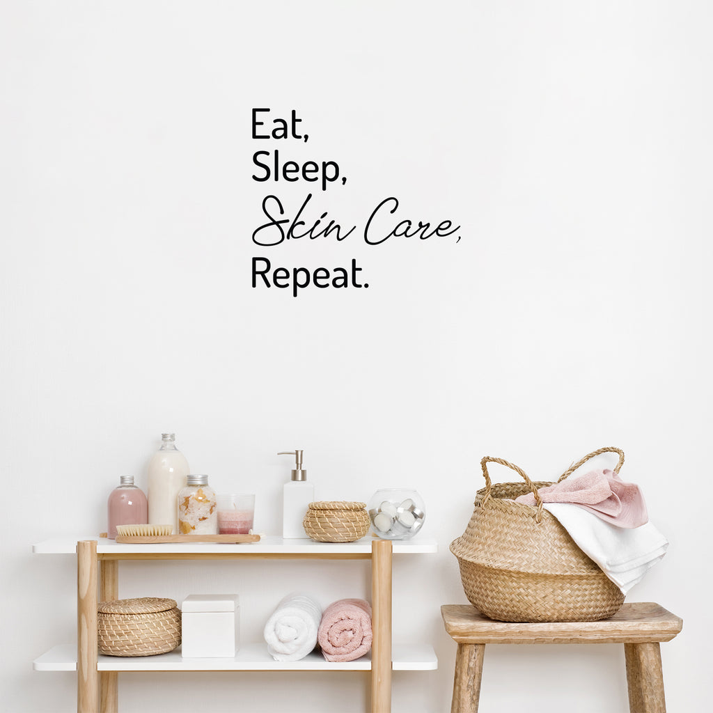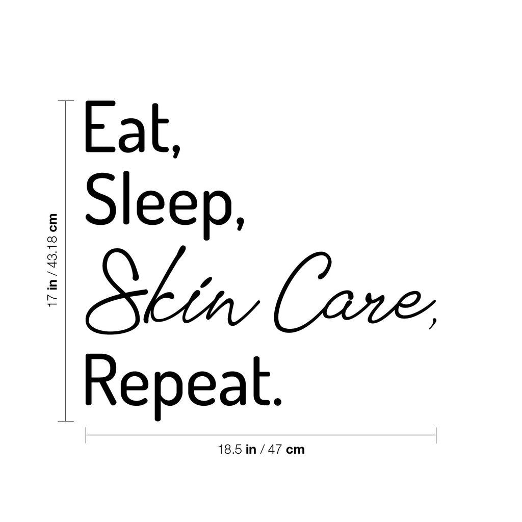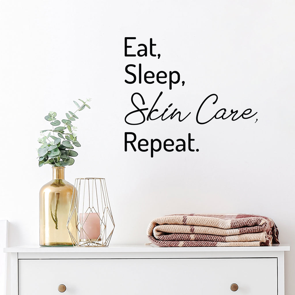 This chic & inspirational decal quote "Eat Sleep Skin Care Repeat"; is the perfect touch for your school or office. Use it for your make up mirror; bathroom; business or anywhere you want to bring some extra positive decoration. It's a vinyl sticker that is easy to put on any smooth and dry surface. Our modern designs don't just brighten up the room; but brighten up the day. Using top of the line vinyl across all of our production allows us to be the leaders in quality and design.