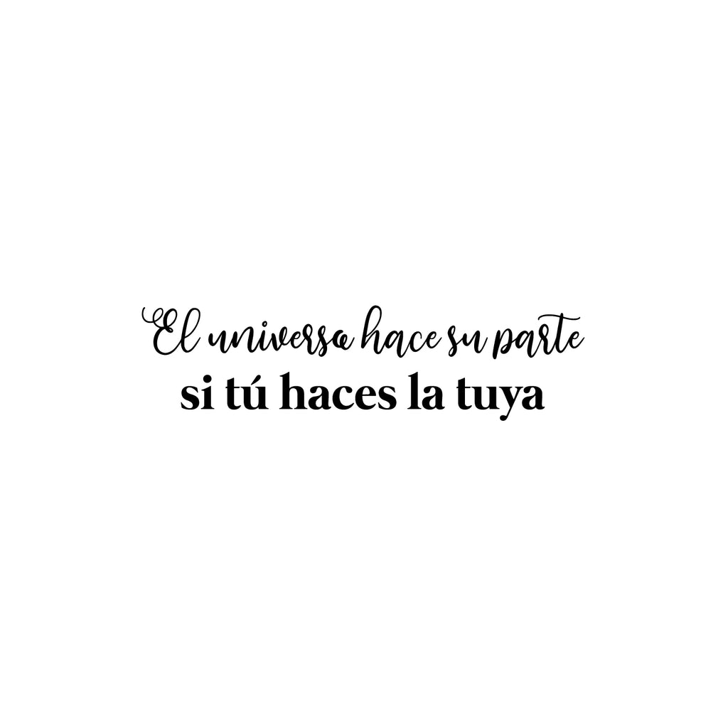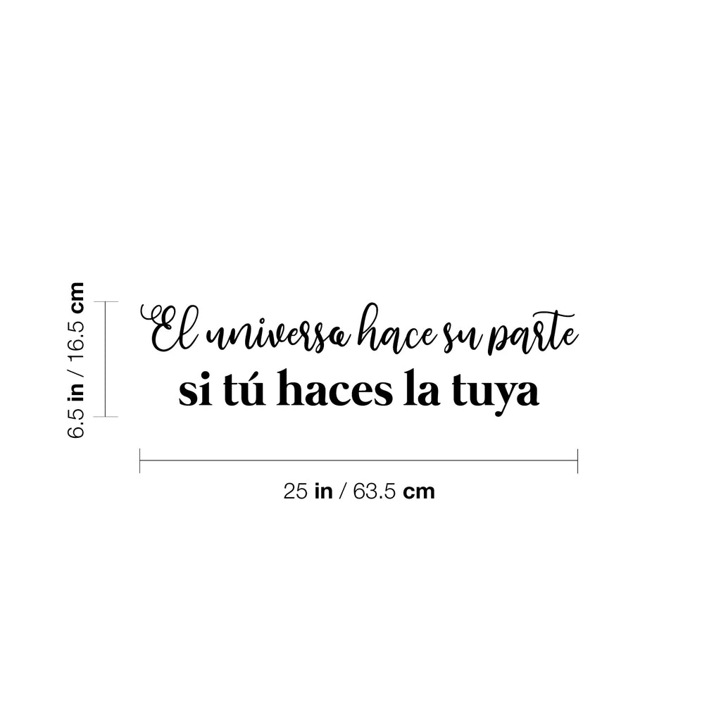 This awesome positive decal quote "El Universo Hace Su Parte Si Tú Haces La Tuya / The Universe Does Its Part If You Do Yours" is the perfect touch for your home or school. Use it for your bedroom; playroom; kids room or anywhere you want to bring some extra cute decoration. It's a vinyl sticker that is easy to put on any smooth and dry surface. Our modern designs don't just brighten up the room; but brighten up the day. Using top of the line vinyl across all of our production allows us to be the leaders in quality and design.