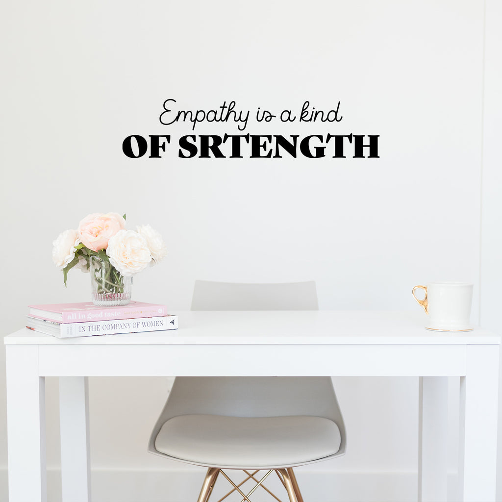 This awesome motivational decal quote "Empathy Is A Kind Of Strength"; is the perfect touch for your home or school. Use it for your living room; playroom; kids room or anywhere you want to bring some extra positive decoration. It's a vinyl sticker that is easy to put on any smooth and dry surface. Our modern designs don't just brighten up the room; but brighten up the day. Using top of the line vinyl across all of our production allows us to be the leaders in quality and design.
