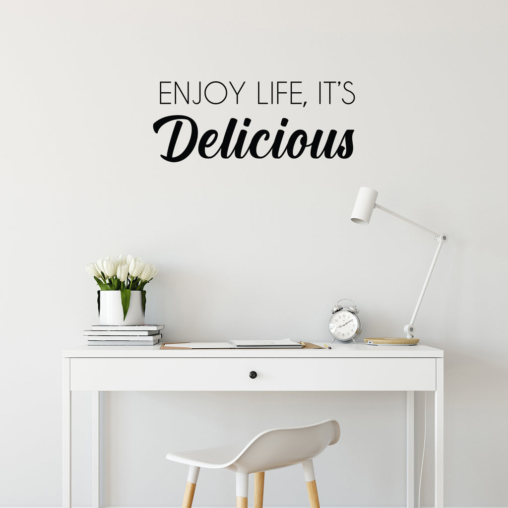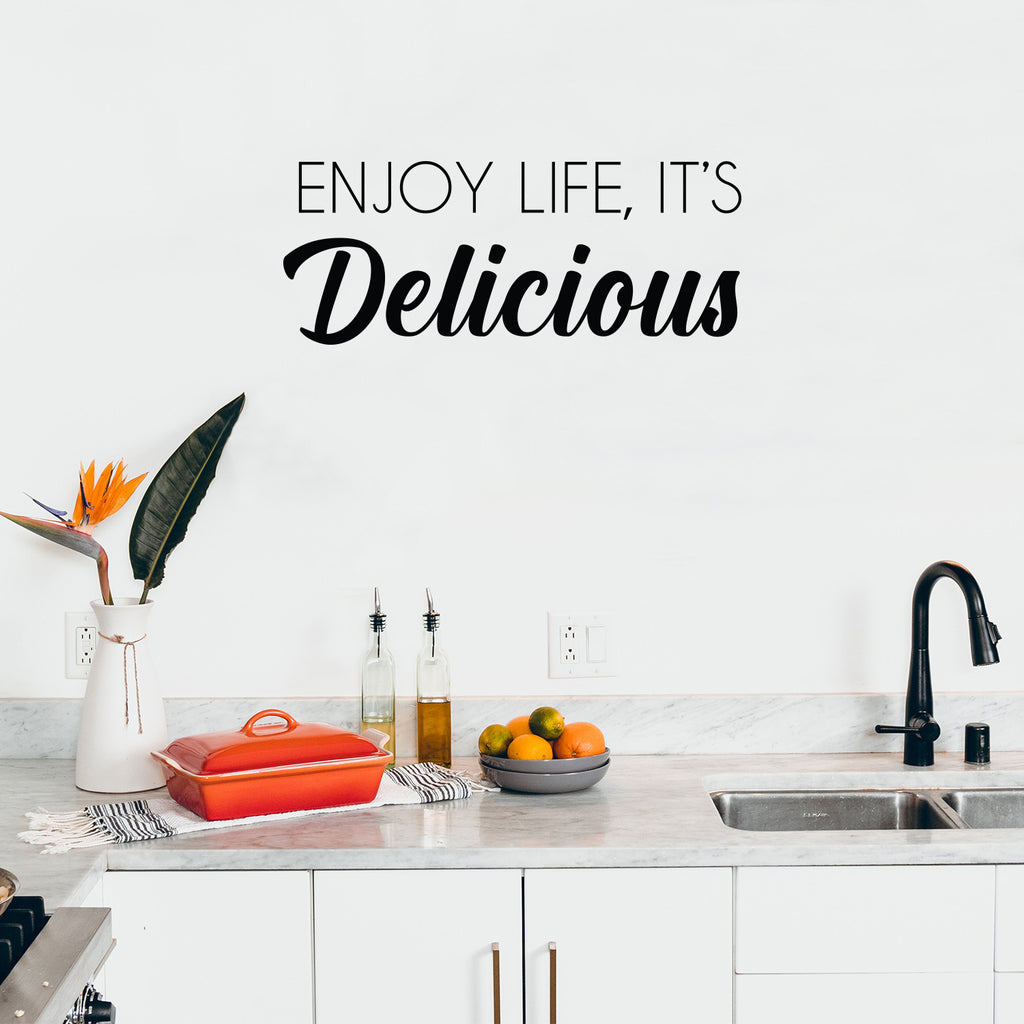 This inspirational & delightful decal quote "Enjoy life It's Delicious"; is the perfect touch for your home or business. Use it for your kitchen; living room; office kitchenette or anywhere you want to bring some extra cute decoration. It's a vinyl sticker that is easy to put on any smooth and dry surface. Our modern designs don't just brighten up the room; but brighten up the day. Using top of the line vinyl across all of our production allows us to be the leaders in quality and design.