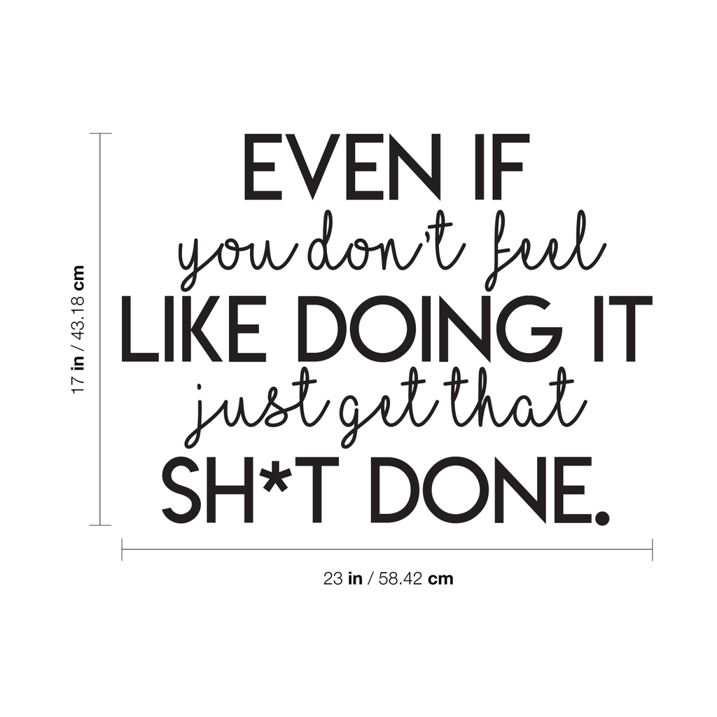 This funny "Even If You Don't Feel Like Doing It; Just Get That Sh*t Done" wall art decal is the perfect touch for your home; gym; or workplace. Use it for your bedroom; living room; office or anywhere you want to bring some extra motivational decoration. It's a vinyl sticker that is easy to put on almost any smooth and dry surface. Our modern designs don't just brighten up the room; but brighten up the day. Using top of the line vinyl across all of our production allows us to be the leaders in quality and design.