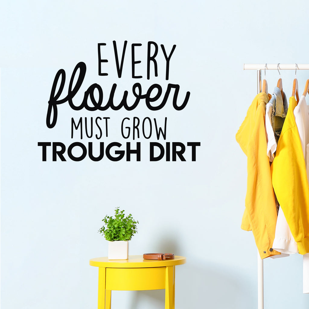 This positive & inspirational decal quote "Every Flower Must Grow Trough Dirt "; is the perfect touch for your home or office. Use it for your bedroom; living room; home office or anywhere you want to bring some extra decoration. It's a vinyl sticker that is easy to put on any smooth and dry surface. Our modern designs don't just brighten up the room; but brighten up the day. Using top of the line vinyl across all of our production allows us to be the leaders in quality and design.