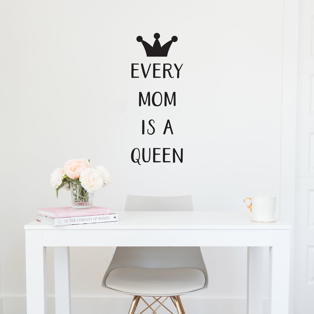 This awesome girly decal quote "Every Mom Is A Queen"; is the perfect touch for your home or store. Use it for your bedroom; living room or anywhere you want to bring some extra cute decoration. It's a vinyl sticker that is easy to put on any smooth and dry surface. Our modern designs don't just brighten up the room; but brighten up the day. Using top of the line vinyl across all of our production allows us to be the leaders in quality and design.