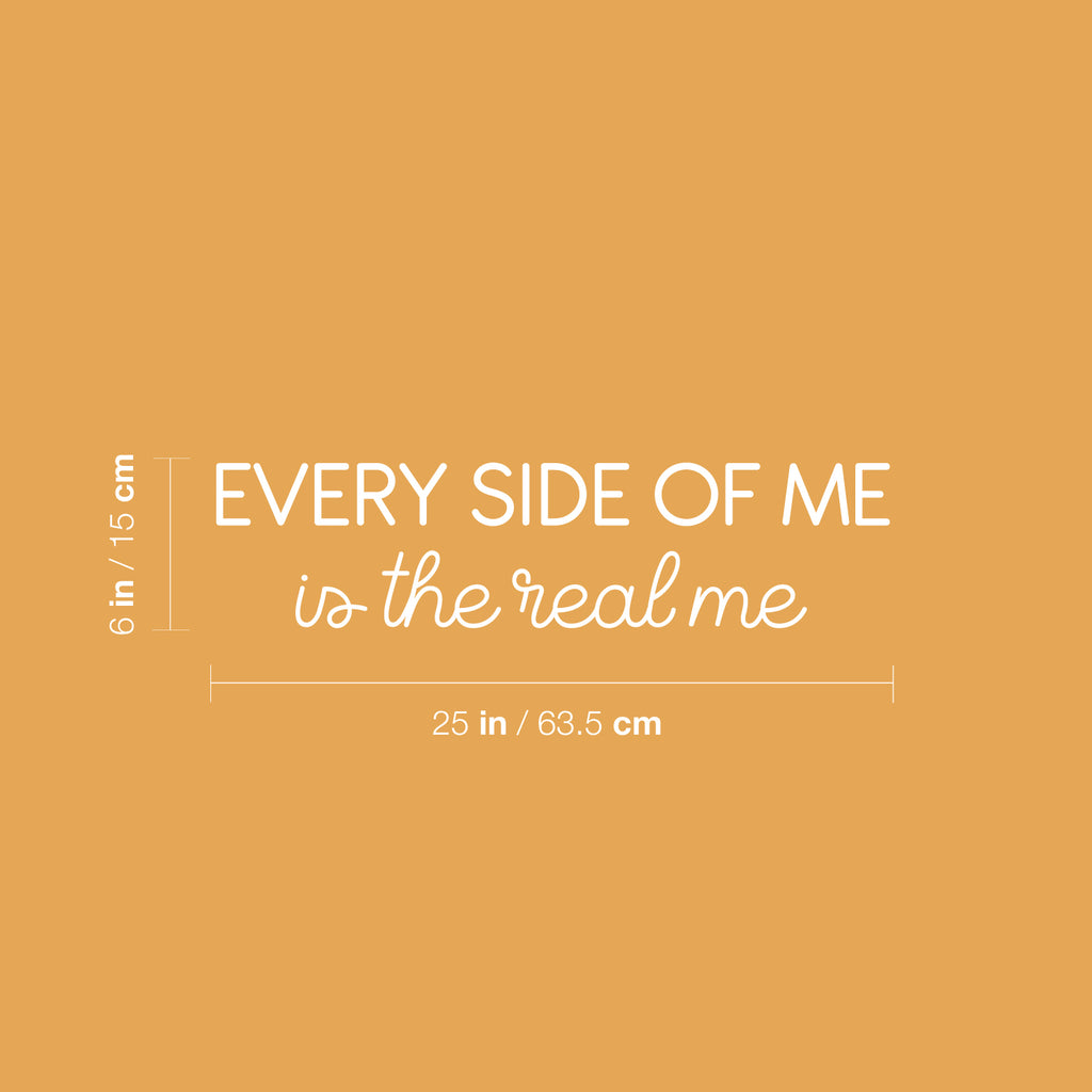This great decal quote "Every Side Of Me Is The Real Me"; is the perfect touch for your home. Use it for your makeup area; dorm room or anywhere you want to bring some extra decoration. It's a vinyl sticker that is easy to put on any smooth and dry surface. Our modern designs don't just brighten up the room; but brighten up the day. Using top of the line vinyl across all of our production allows us to be the leaders in quality and design.