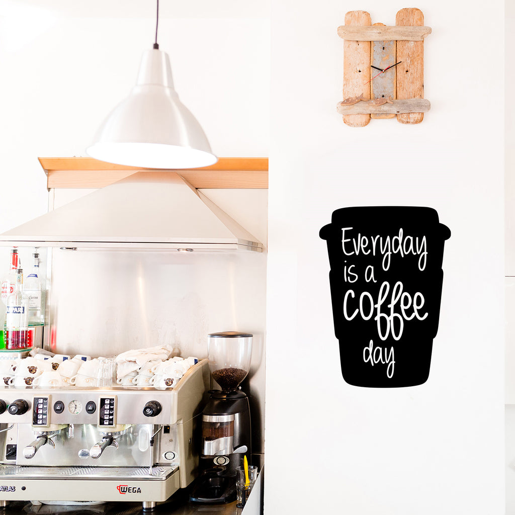 This cute decal quote "Everyday Is A Coffee Day"; is the perfect touch for your office or coffee shop. Use it for your dining room; restaurant; kitchen or anywhere you want to bring some extra fun decoration. It's a vinyl sticker that is easy to put on any smooth and dry surface. Our modern designs don't just brighten up the room; but brighten up the day. Using top of the line vinyl across all of our production allows us to be the leaders in quality and design.