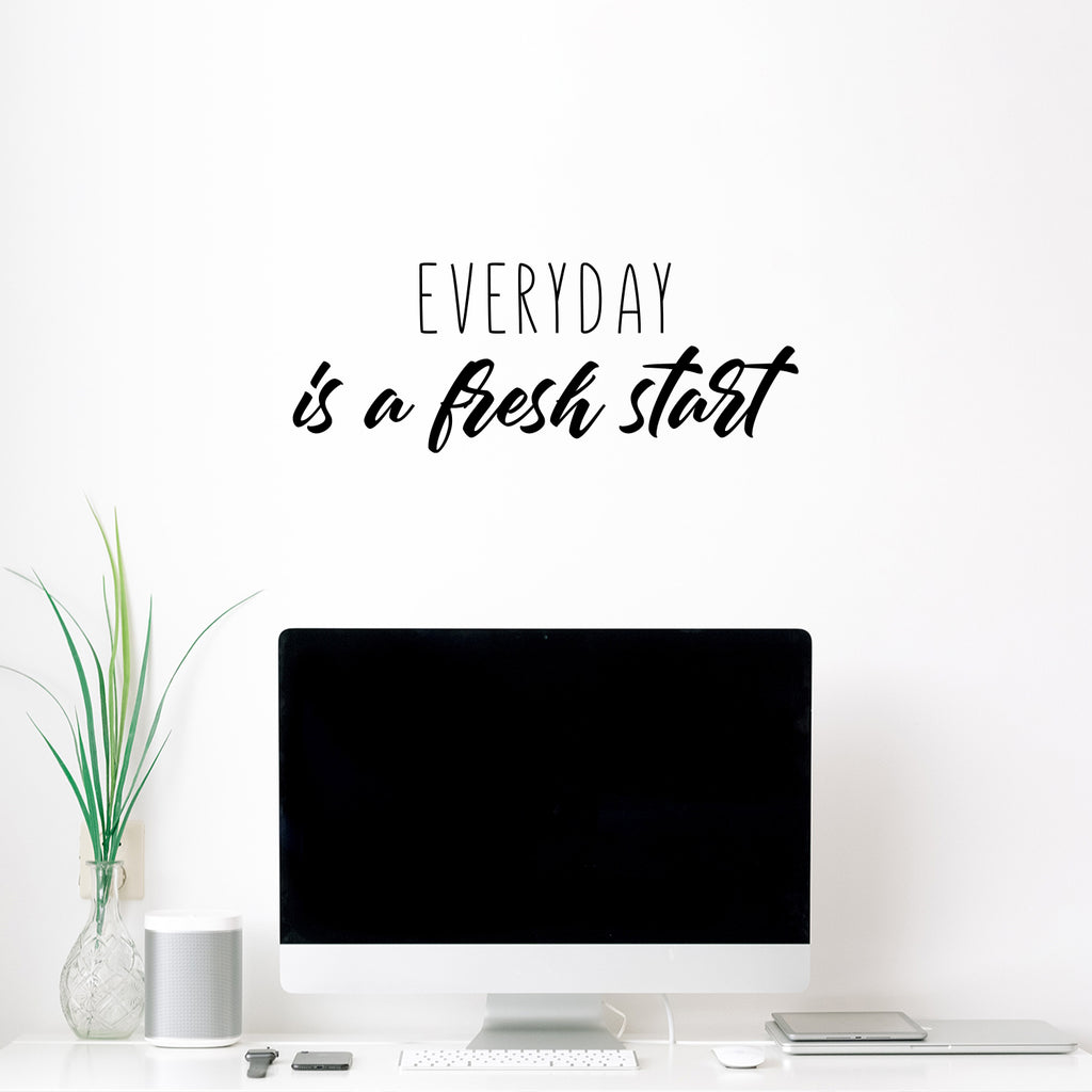 This awesome positive decal quote "Everyday Is A Fresh Start"; is the perfect touch for your home or office. Use it for your living room; playroom; kids room or anywhere you want to bring some extra cute decoration. It's a vinyl sticker that is easy to put on any smooth and dry surface. Our modern designs don't just brighten up the room; but brighten up the day. Using top of the line vinyl across all of our production allows us to be the leaders in quality and design.