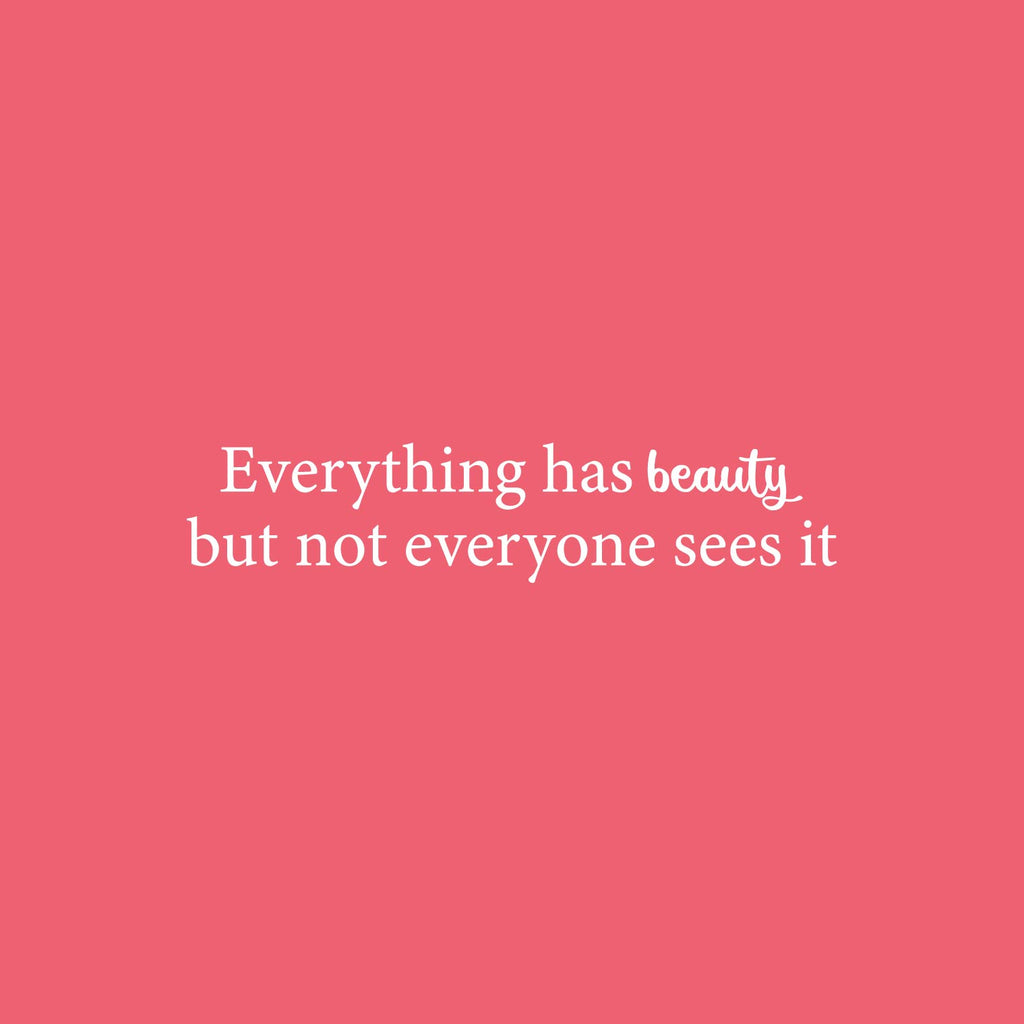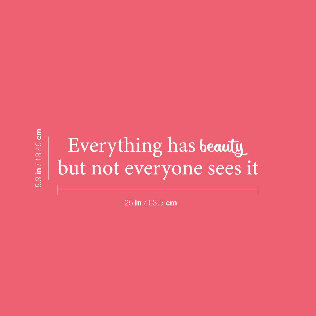 This awesome cute & inspiring decal quote "Everything Has Beauty But Not Everyone Sees It"; is the perfect touch for your home or office. Use it for your make up mirror; bathroom; closet or anywhere you want to bring some extra positive decoration. It's a vinyl sticker that is easy to put on any smooth and dry surface. Our modern designs don't just brighten up the room; but brighten up the day. Using top of the line vinyl across all of our production allows us to be the leaders in quality and design.