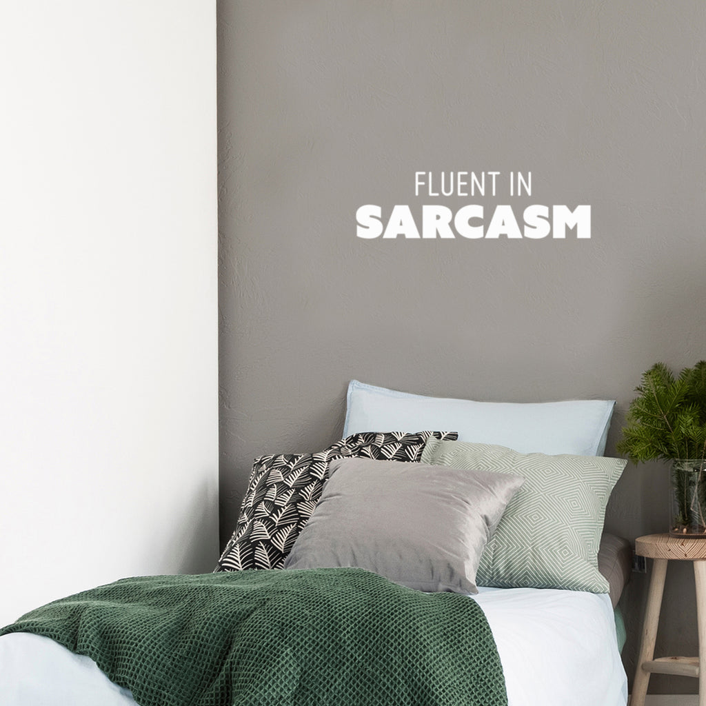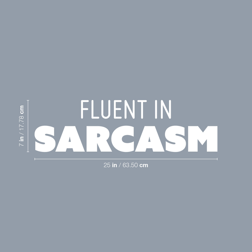 This awesome funny decal quote "Fluent In Sarcasm"; is the perfect touch for your home or office. Use it for your store; coffee shop or anywhere you want to bring some extra funny decoration. It's a vinyl sticker that is easy to put on any smooth and dry surface. Our modern designs don't just brighten up the room; but brighten up the day. Using top of the line vinyl across all of our production allows us to be the leaders in quality and design.