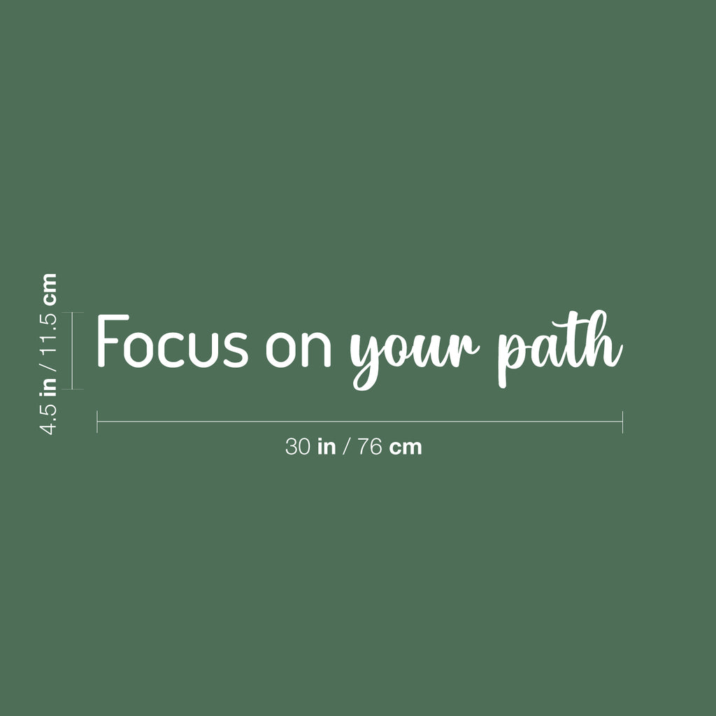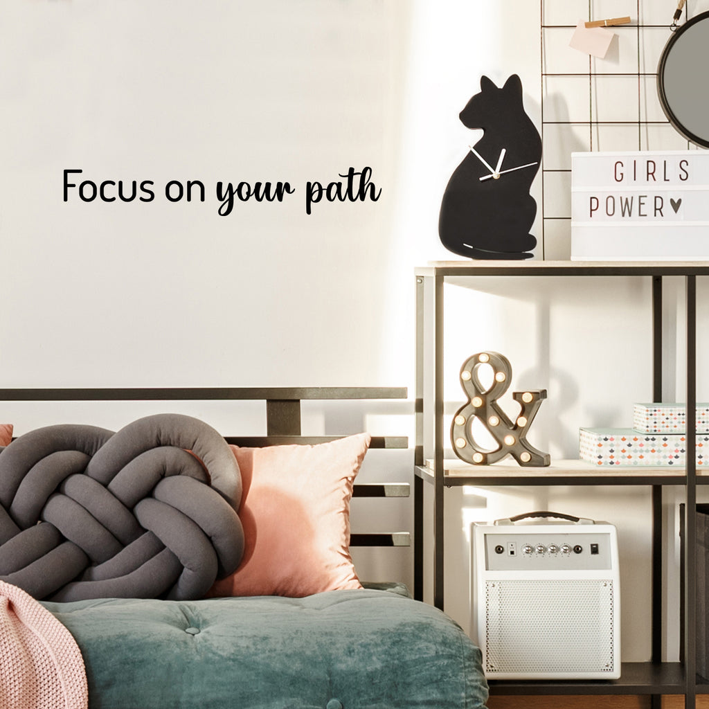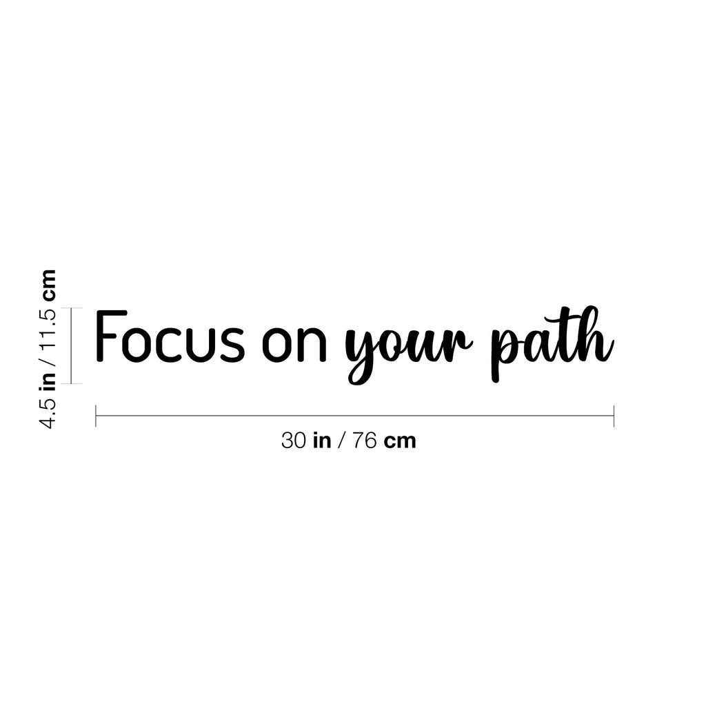 This great decal quote "Focus On Your Path"; is the perfect touch for your home. Use it for your kids room; living room or anywhere you want to bring some extra decoration. It's a vinyl sticker that is easy to put on any smooth and dry surface. Our modern designs don't just brighten up the room; but brighten up the day. Using top of the line vinyl across all of our production allows us to be the leaders in quality and design.