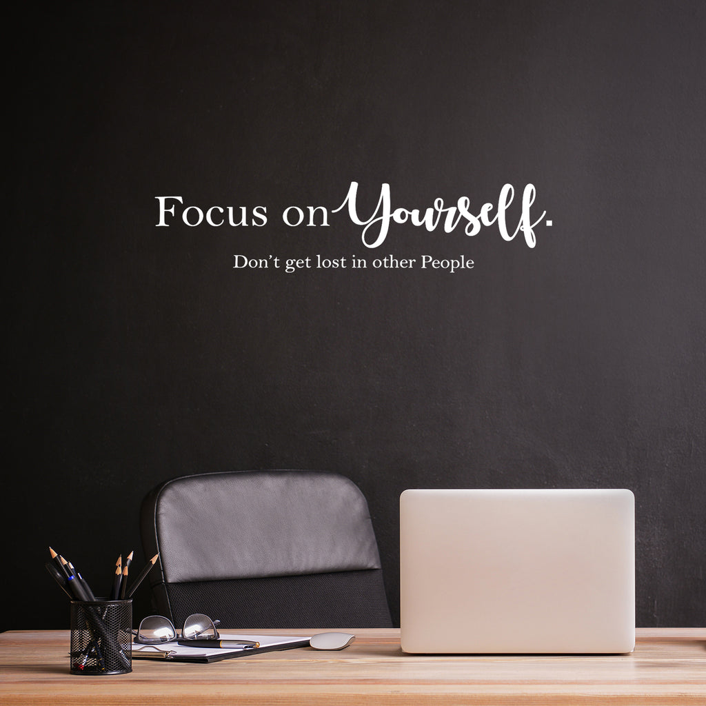 This awesome motivational decal quote "Focus On Yourself Don't Get Lost In Other People"; is the perfect touch for your home or office. Use it for your living room; coffee shop; storefront or anywhere you want to bring some extra inspiring decoration. It's a vinyl sticker that is easy to put on any smooth and dry surface. Our modern designs don't just brighten up the room; but brighten up the day. Using top of the line vinyl across all of our production allows us to be the leaders in quality and design.