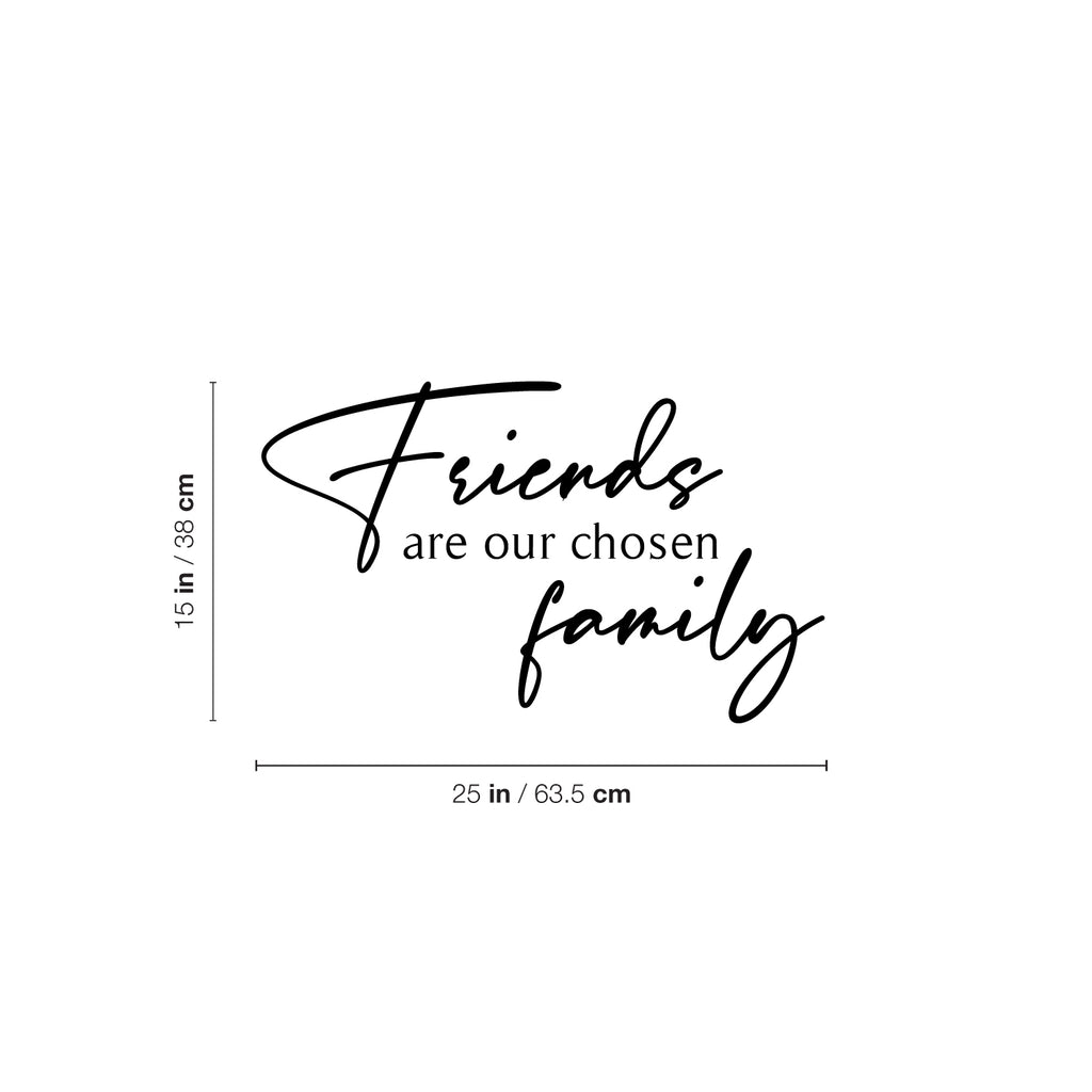 This inspirational decal quote "Friends Are Our Chosen Family"; is the perfect touch for your home or apartment. Use it for your bed; bedroom; dorm room; home office or anywhere you want to bring some extra decoration. It's a vinyl sticker that is easy to put on any smooth and dry surface. Our modern designs don't just brighten up the room; but brighten up the day. Using top of the line vinyl across all of our production allows us to be the leaders in quality and design.