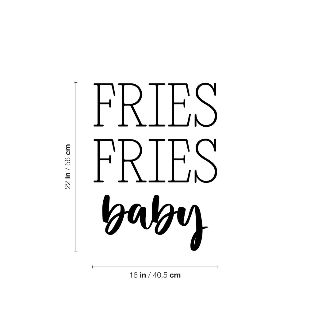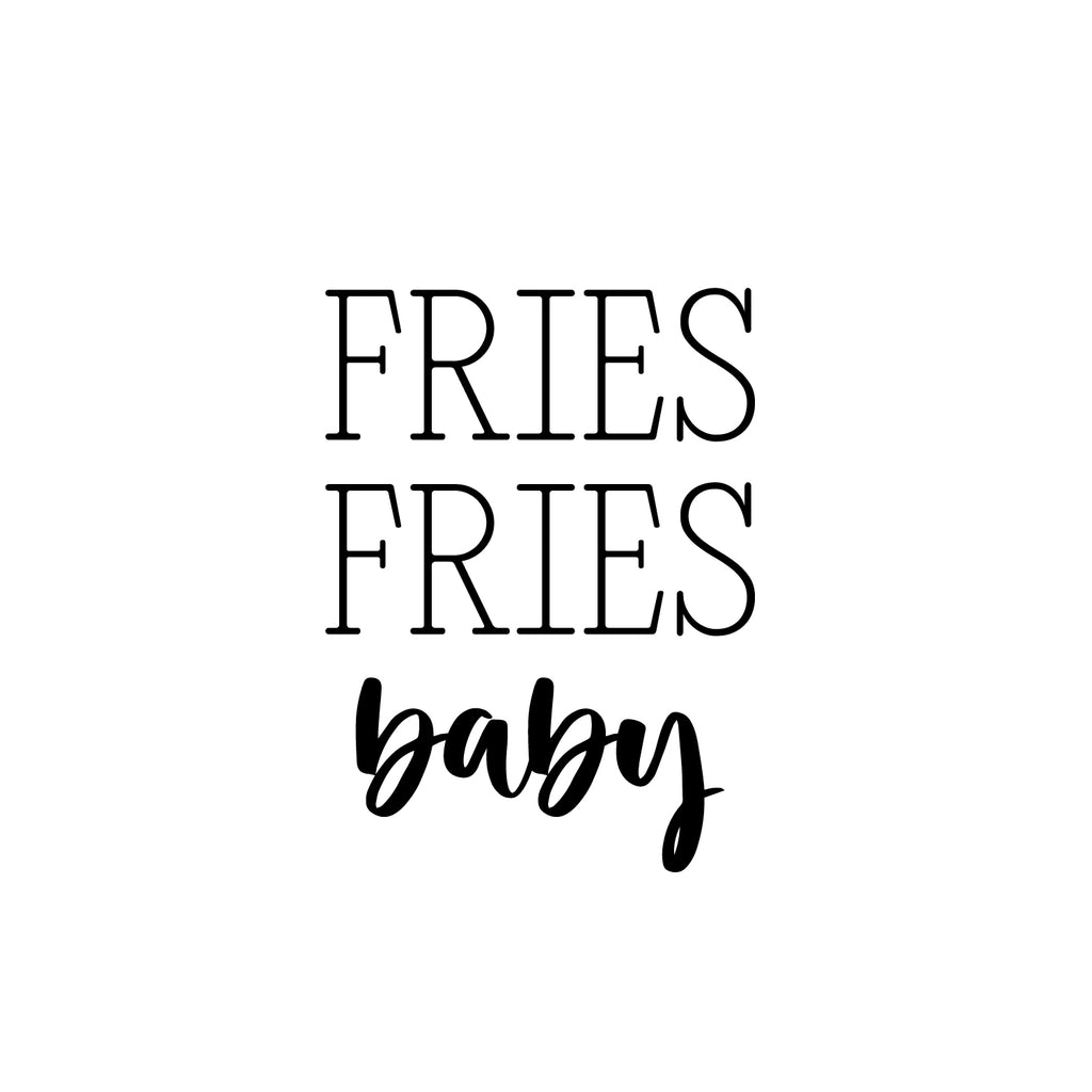 This awesome cute decal quote "Fries Fries Baby"; is the perfect touch for your home or coffee shop. Use it for your dining room; kitchen or anywhere you want to bring some extra decoration. It's a vinyl sticker that is easy to put on any smooth and dry surface. Our modern designs don't just brighten up the room; but brighten up the day. Using top of the line vinyl across all of our production allows us to be the leaders in quality and design.