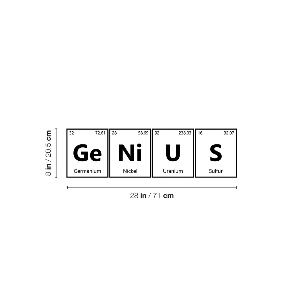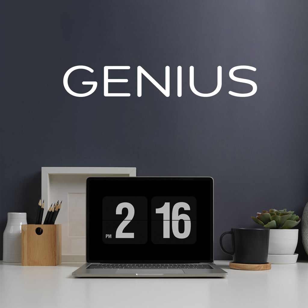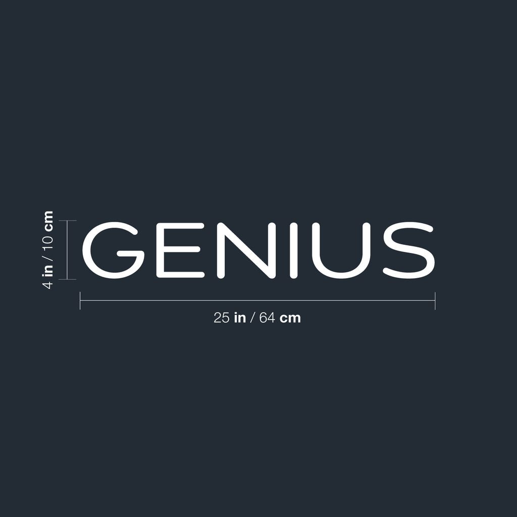 This cool decal quote "GENIUS"; is the perfect touch for your office or coffee shop. Use it for your dining room; restaurant; kitchen or anywhere you want to bring some extra fun decoration. It's a vinyl sticker that is easy to put on any smooth and dry surface. Our modern designs don't just brighten up the room; but brighten up the day. Using top of the line vinyl across all of our production allows us to be the leaders in quality and design.