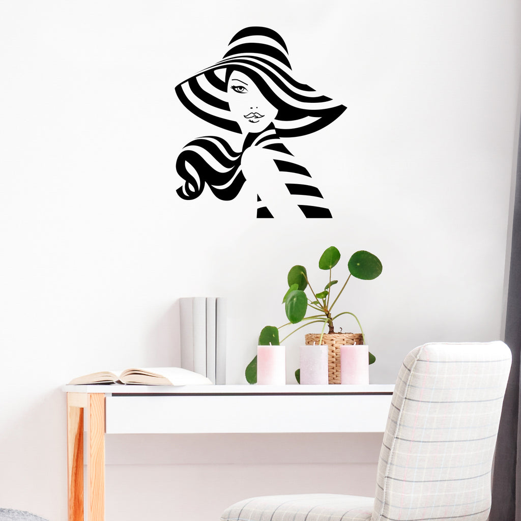 Vinyl Wall Art Decal - Girl In A Sunhat Silhouette - 24. Chic Vogue Modern Feminine Body Shape Home Work Bedroom Living Room Apartment Office Store Indoor Women's Teens Decoration
