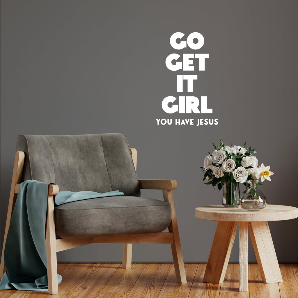 This awesome spiritual & inspiring decal quote "Go Get It Girl You Have Jesus"; is the perfect touch for your home. Use it for your bedroom; closet; living room or anywhere you want to bring some extra cute decoration. It's a vinyl sticker that is easy to put on any smooth and dry surface. Our modern designs don't just brighten up the room; but brighten up the day. Using top of the line vinyl across all of our production allows us to be the leaders in quality and design.