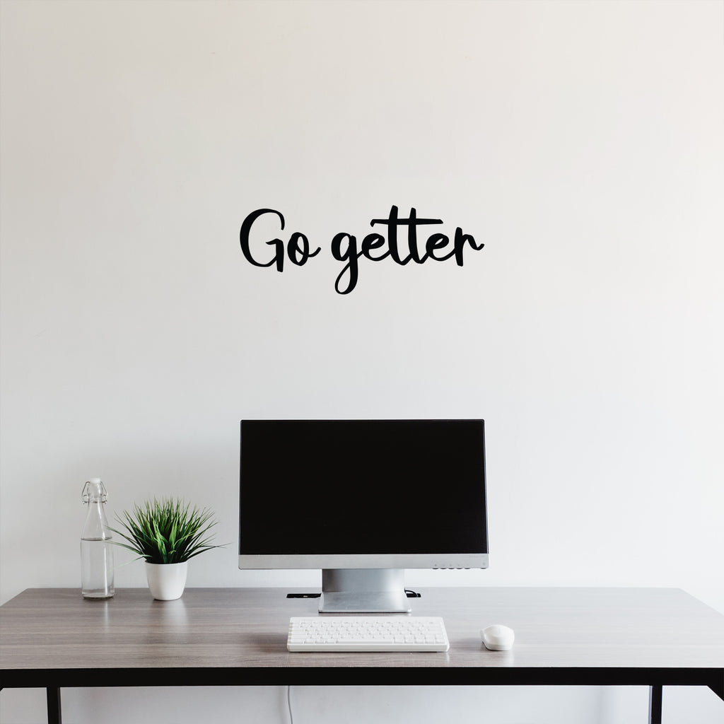 This awesome optimistic & motivational decal quote "Go Getter!"; is the perfect touch for your gym or office. Use it for your living room; school; workout space or anywhere you want to bring some extra positive decoration. It's a vinyl sticker that is easy to put on any smooth and dry surface. Our modern designs don't just brighten up the room; but brighten up the day. Using top of the line vinyl across all of our production allows us to be the leaders in quality and design.