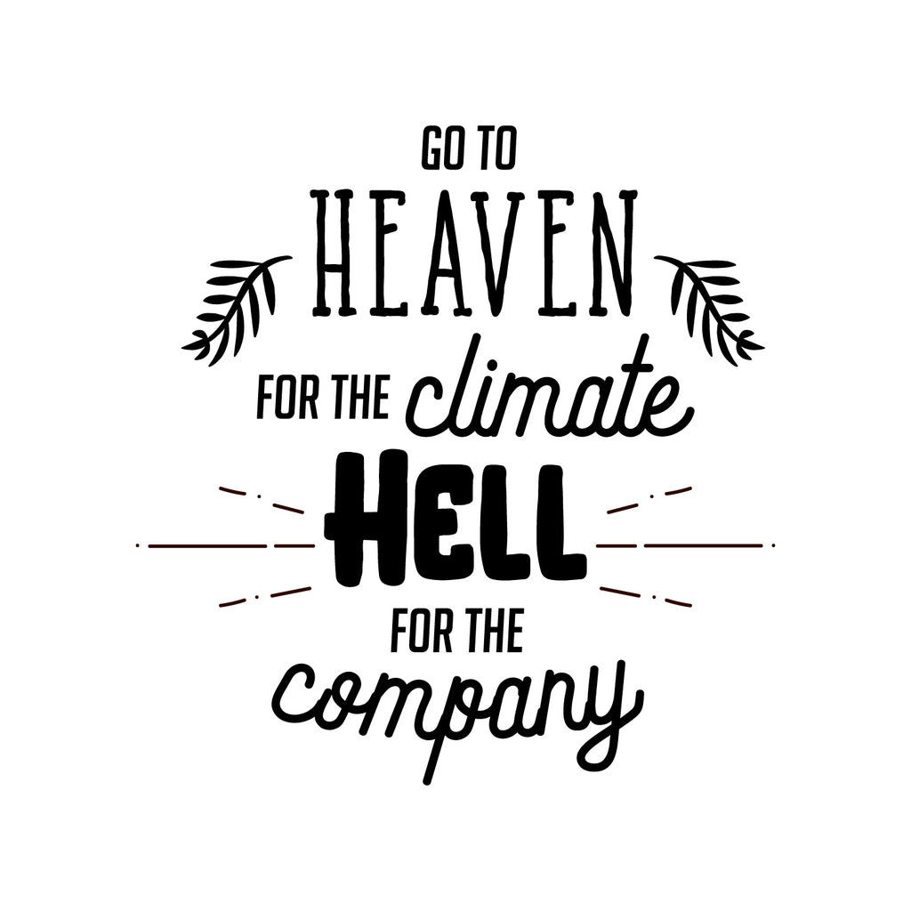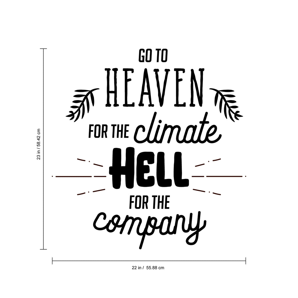 Vinyl Wall Art Decal - Go To Heaven For the Climate Hell for The Company- Funny Inspirational Quote Home Decor for Living Room Bedroom Office Business Workplace - Sticker Decals