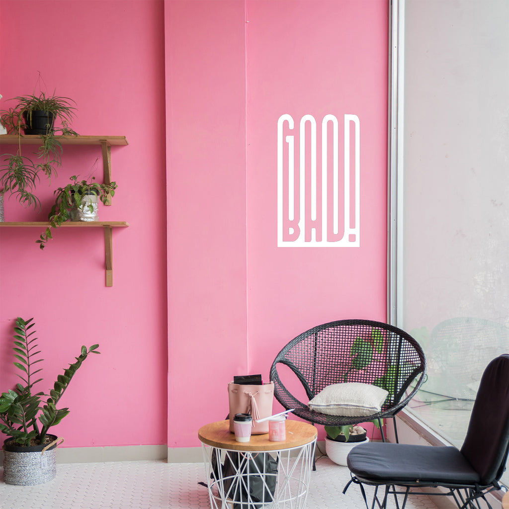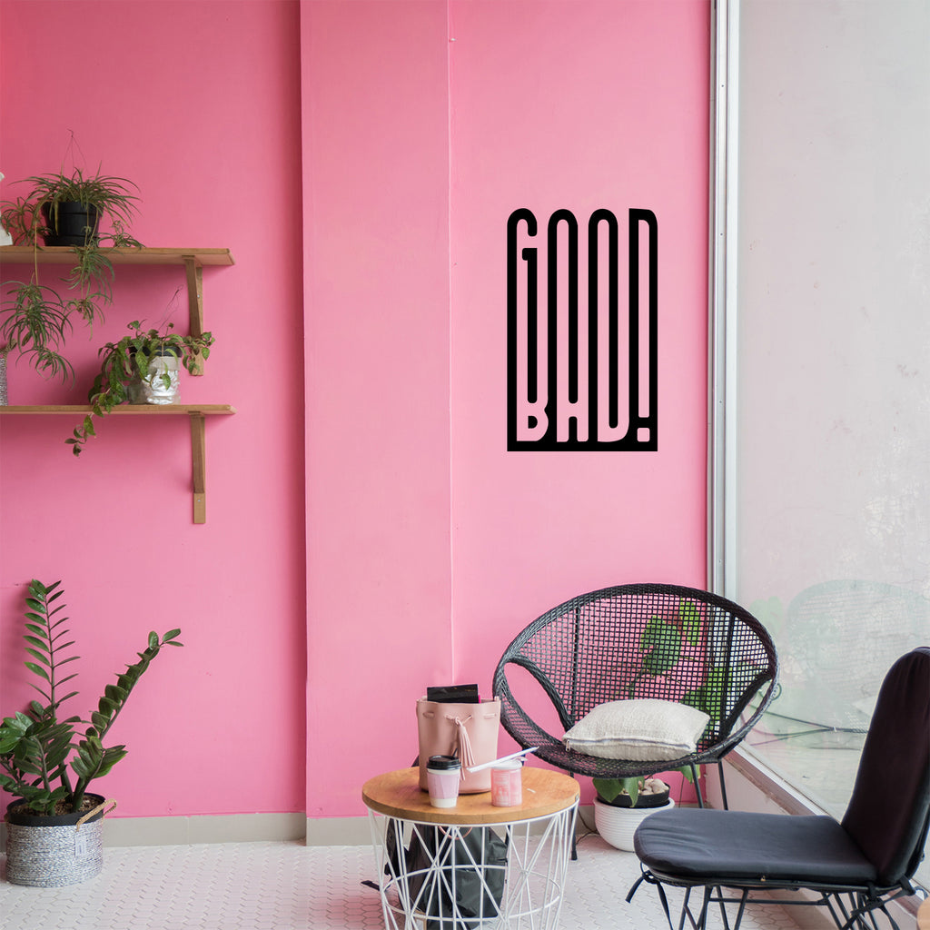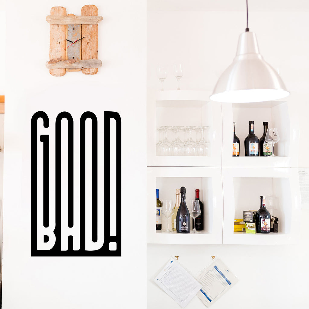 This awesome motivational decal quote "Good Bad"; is the perfect touch for your home or office. Use it for your store; coffee shop; work or anywhere you want to bring some extra inspiring decoration. It's a vinyl sticker that is easy to put on any smooth and dry surface. Our modern designs don't just brighten up the room; but brighten up the day. Using top of the line vinyl across all of our production allows us to be the leaders in quality and design.